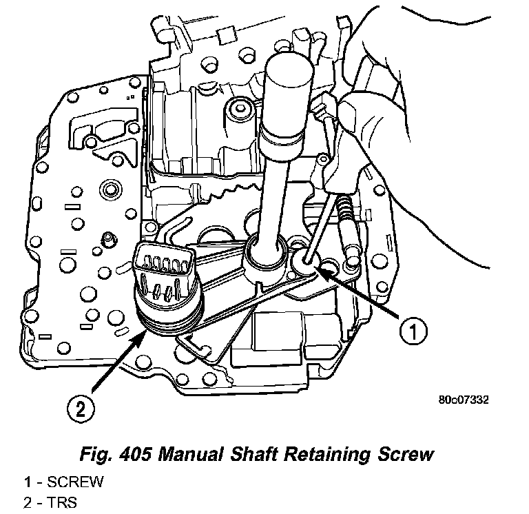 4. Remove manual shaft/TRS retaining screw (Fig. 405).