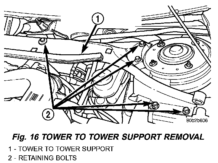 5. Remove eight bolts to Tower to Tower (crosscar) support. Refer to Body for REMOVAL.