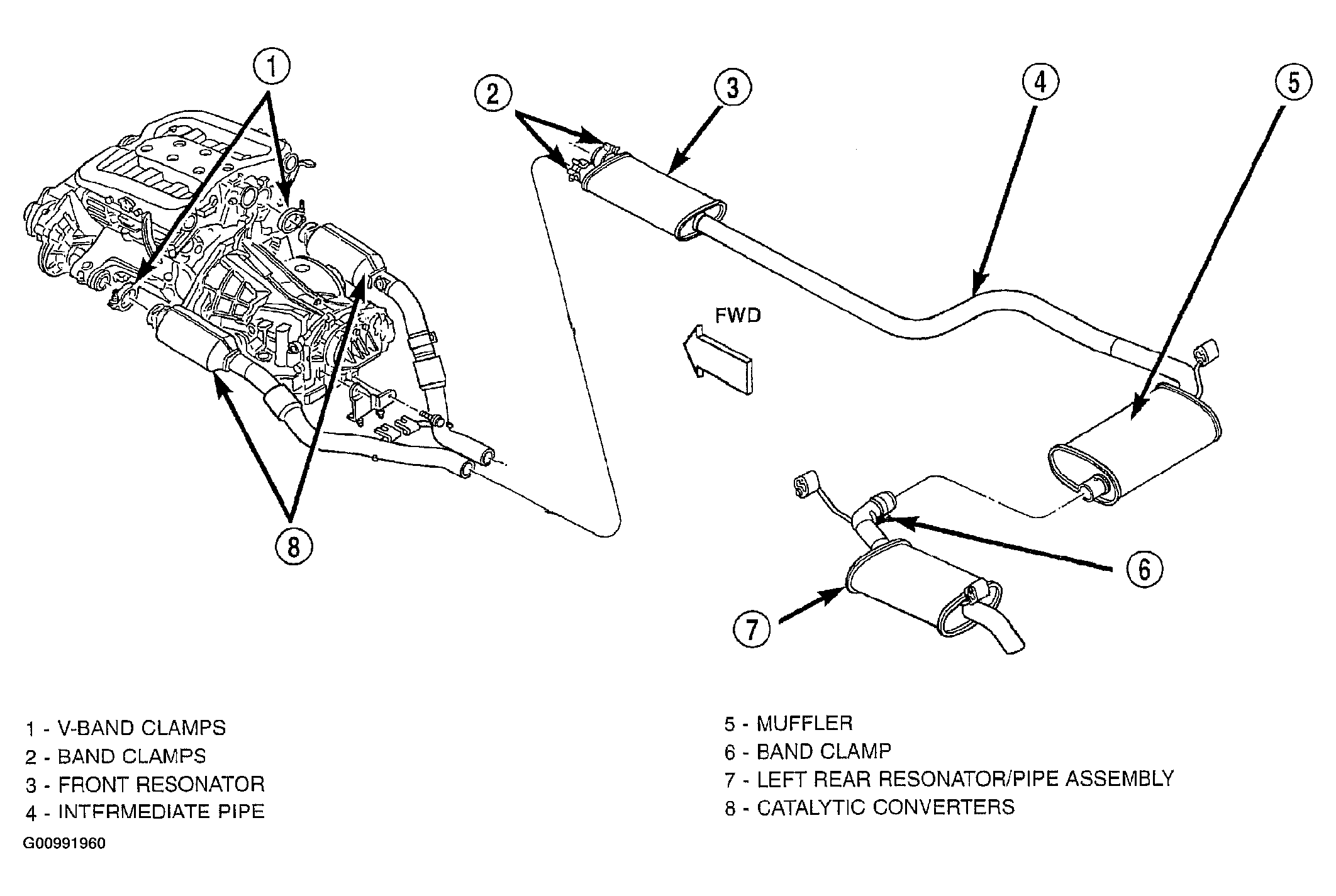- Install left rear resonator/pipe onto new muffler/front resonator (Figure) or (Figure), but do not tighten clamp until exhaust system is installed on vehicle.