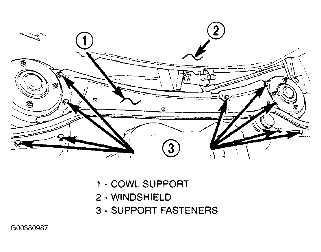 - Install fasteners attaching the forward edge of radiator upper crossmember.