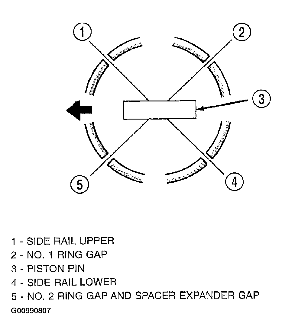 - Before installing piston and connecting rod assemblies into the bore, ensure that compression ring gaps are staggered so that neither is in line with oil ring rail gap.