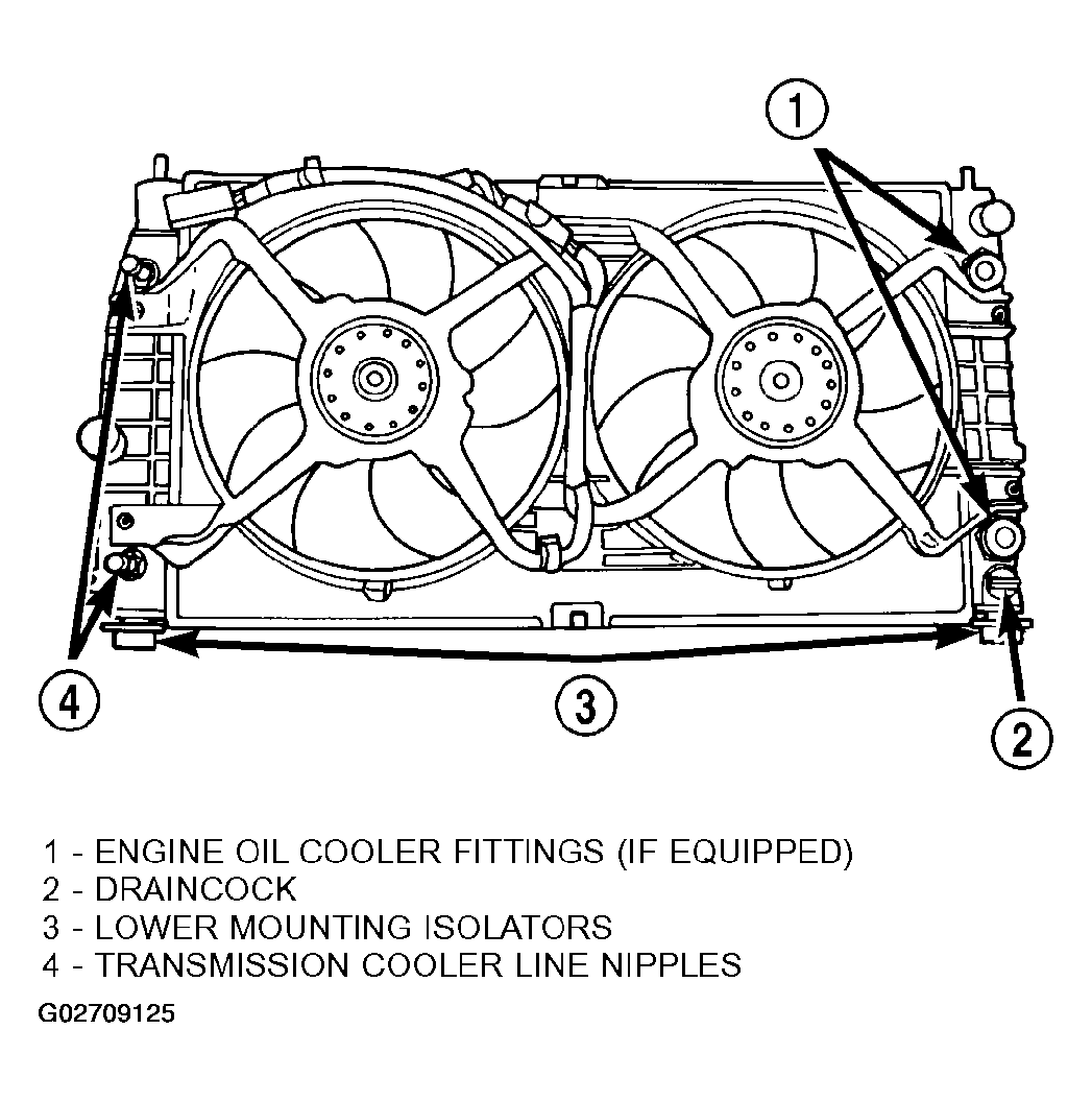 - Position radiator into engine compartment. Seat the radiator assembly lower rubber isolators into the mounting holes in radiator lower support (Figure ).
