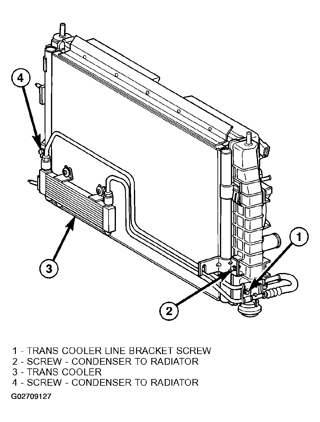 - Attach air conditioning condenser to mounting clips on radiator. Install mounting screws and tighten to 5 N.m (45 in. lbs.) (Figure ) or (Figure ).