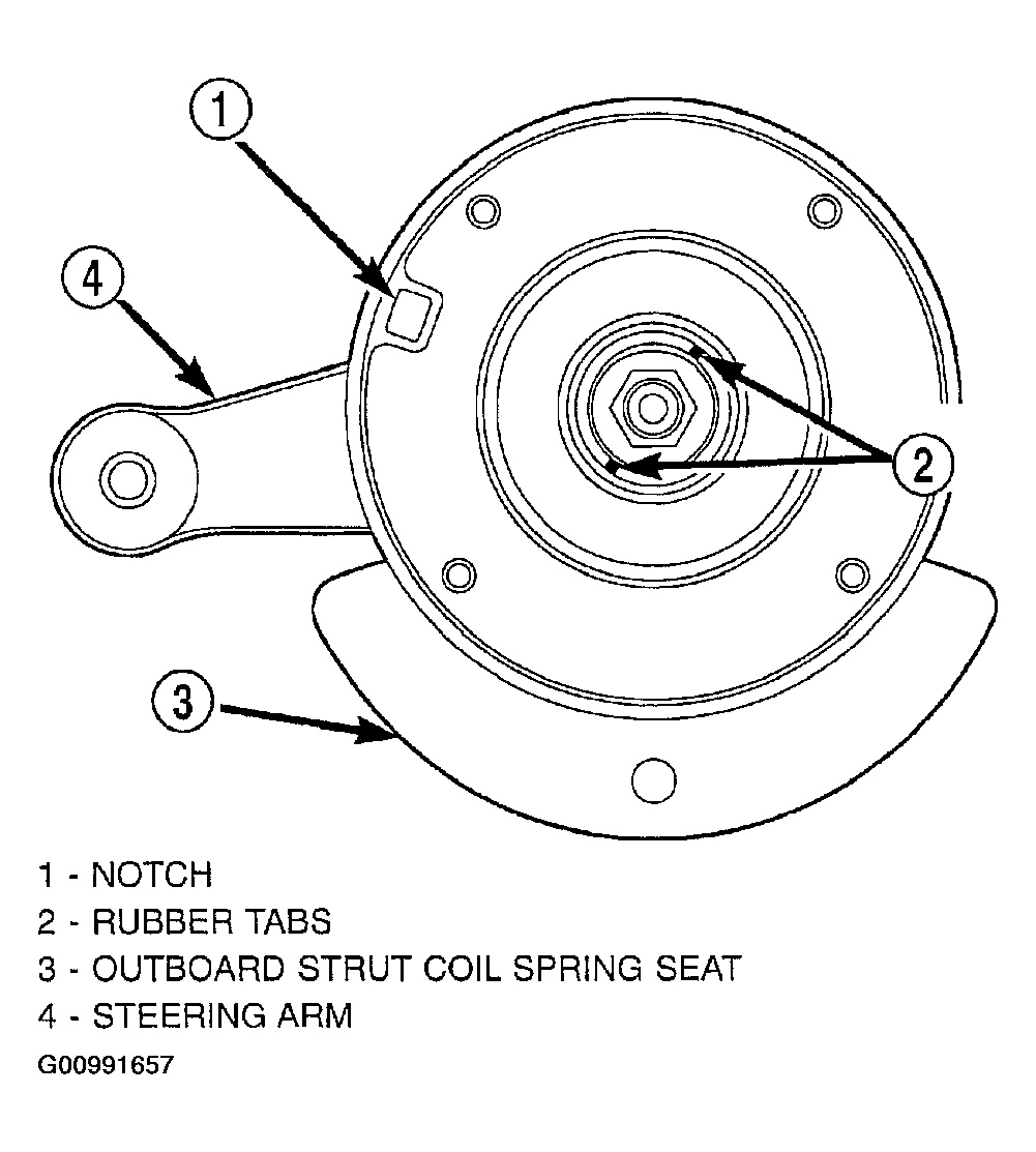 - Install the lower spring isolator on the lower spring seat of the strut (Figure). The tabs on the isolator will align it on the strut spring seat. They straddle the expanded area of the lower spring seat on the strut.