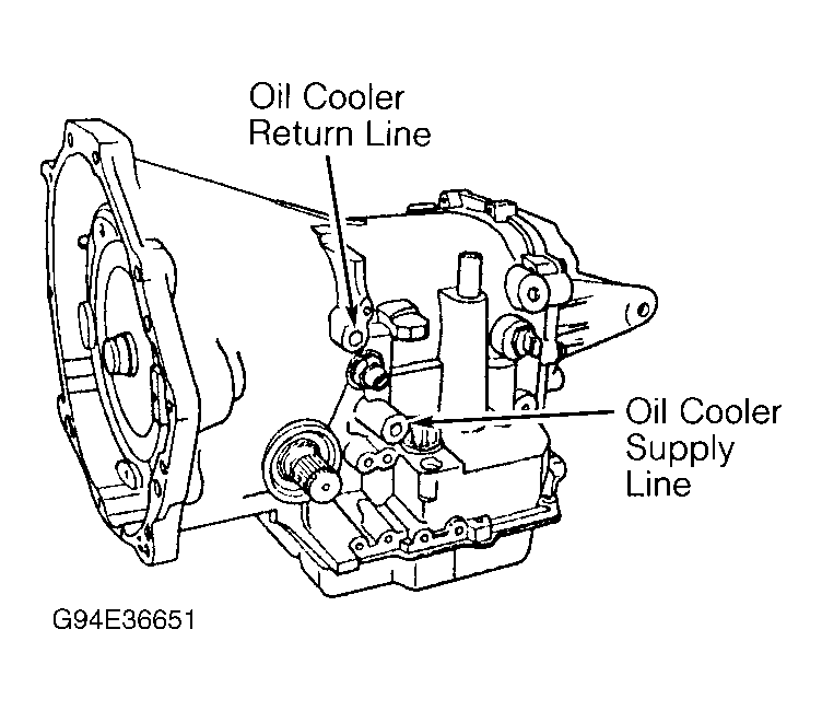 - If fluid flow is intermittent or takes more than 20 seconds to obtain one quart of fluid, replace oil cooler. Reinstall oil cooler return line. Fill transaxle to proper level with appropriate fluid. See CHECKING FLUID LEVELS .
