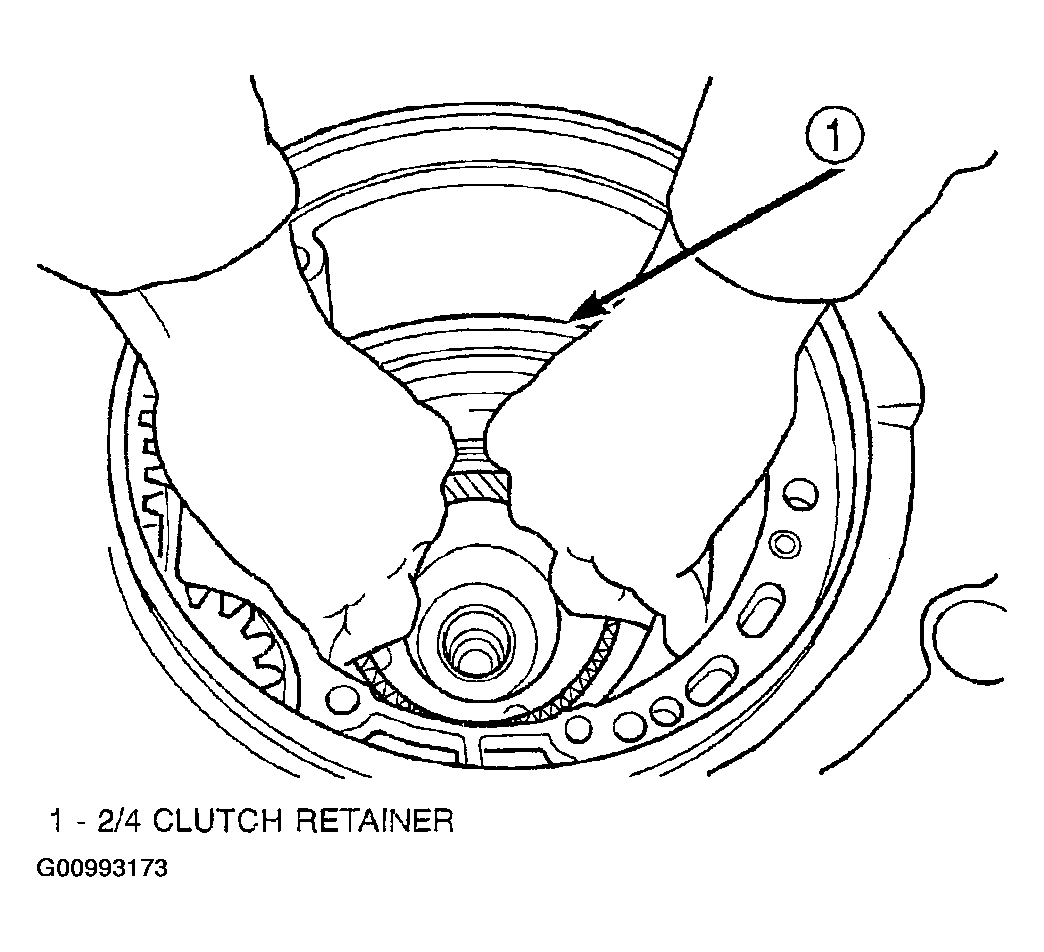 - Remove 2/4 clutch retainer. See Fig 29 and Fig 30 .
