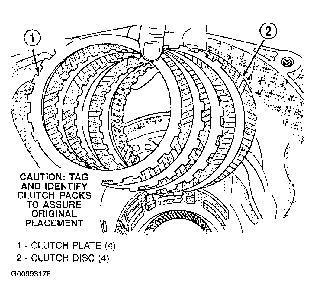 Tag all clutch pack assemblies, as they are removed, for reassembly identification.