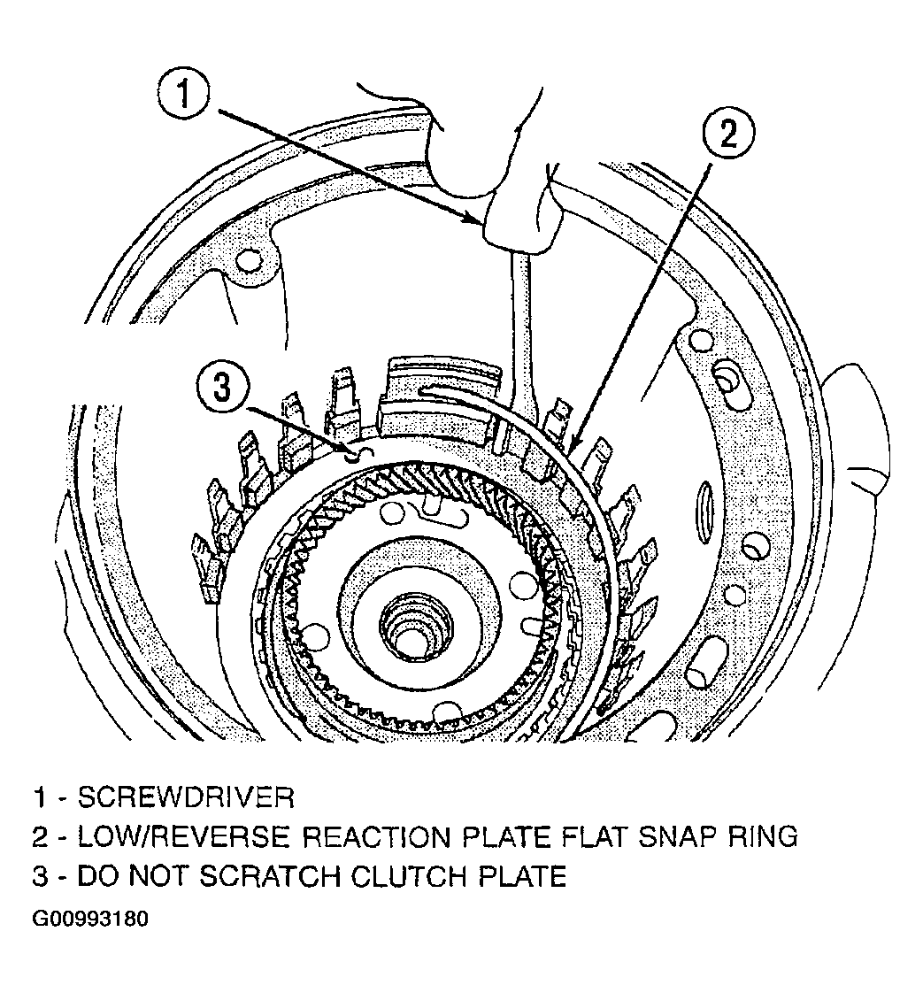 - Remove low/reverse reaction plate snap ring. See Fig 36.