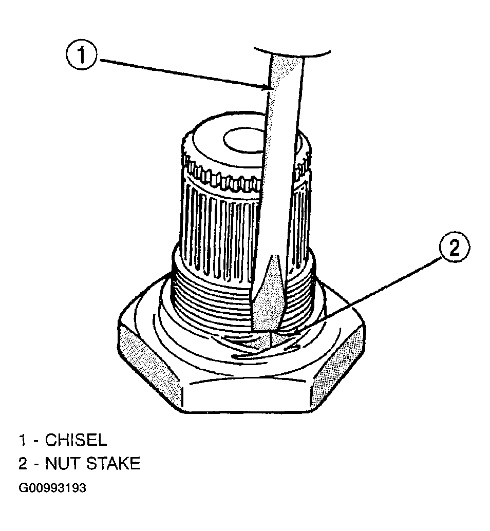 - Using a small chisel, carefully open stakes on nut. See Fig 49.