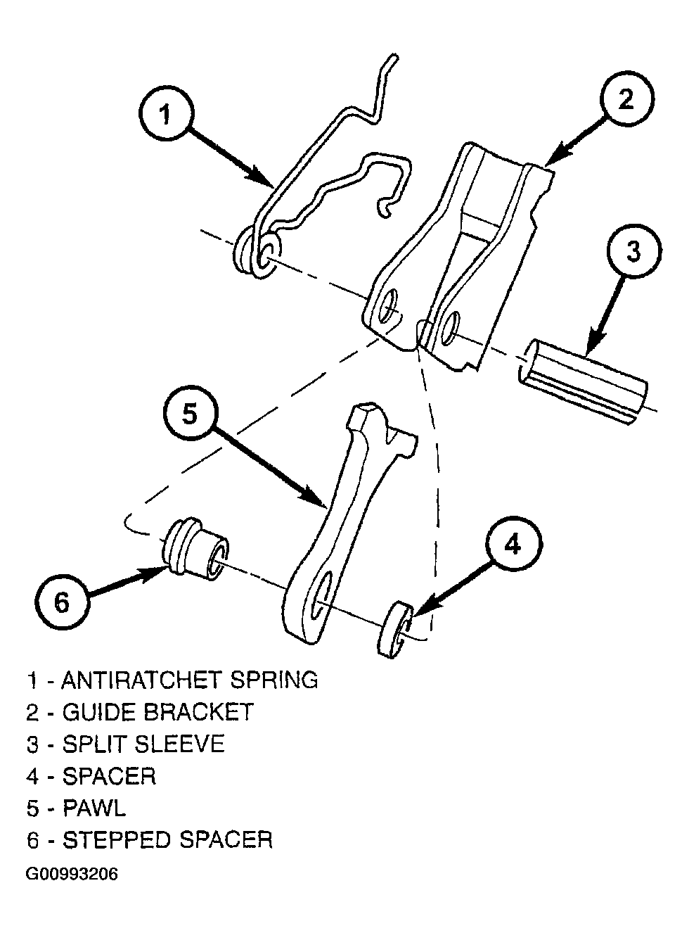 - Remove guide bracket pivot shaft. See Fig 61. Inspect all components for wear and replace if necessary. See Fig 62.