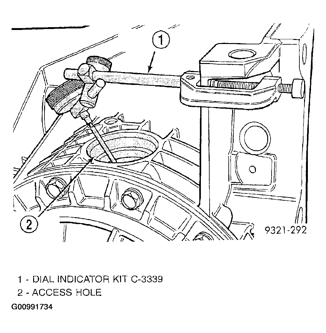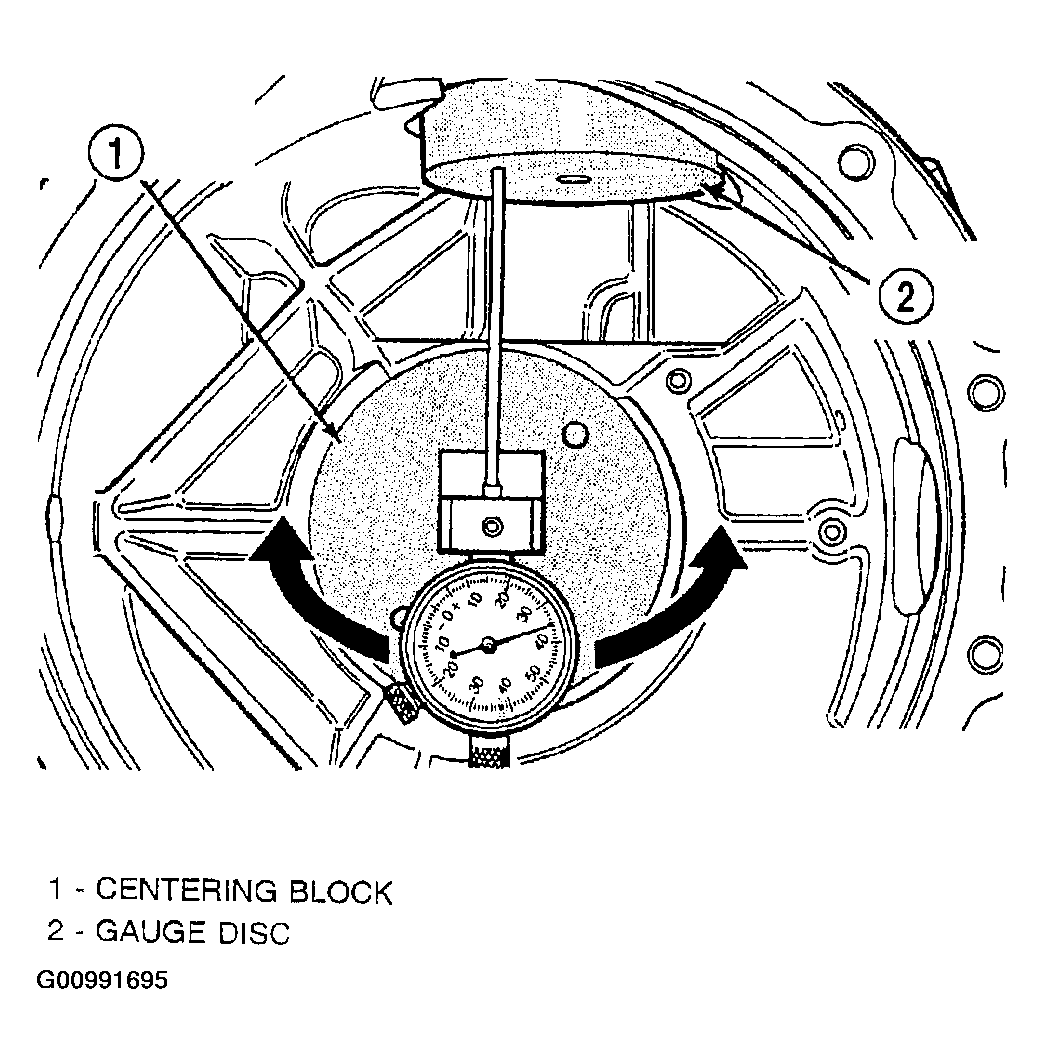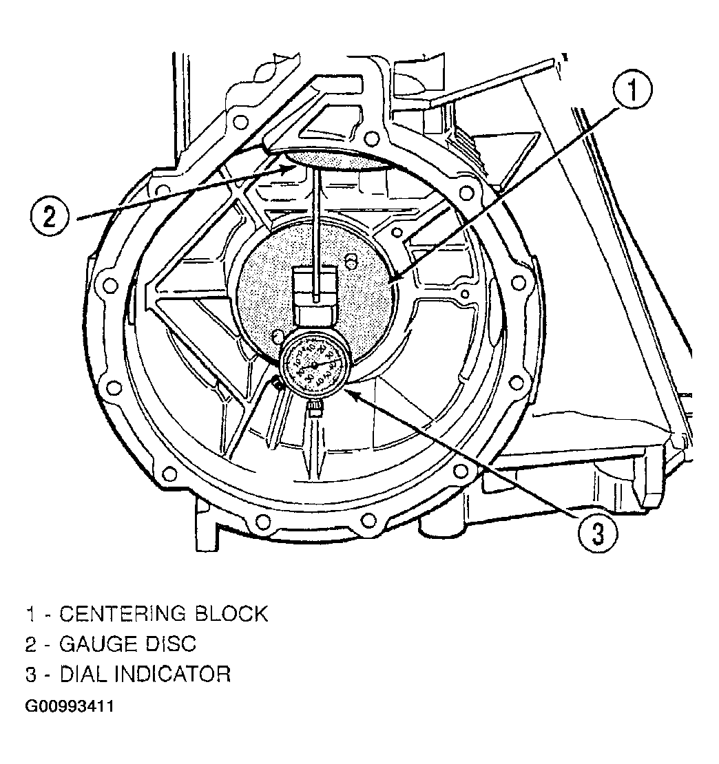 - Remove dial indicator, gauge disc and centering block from transaxle.