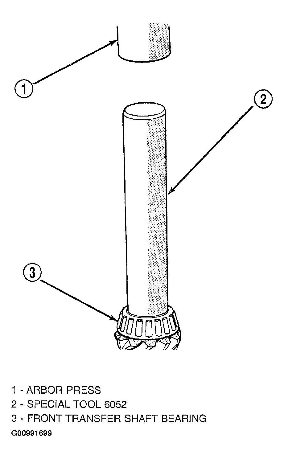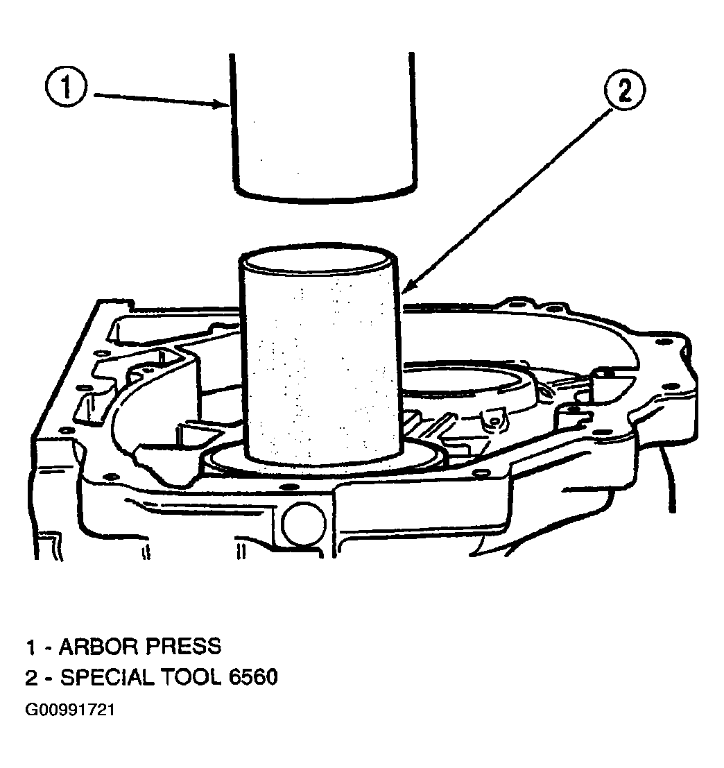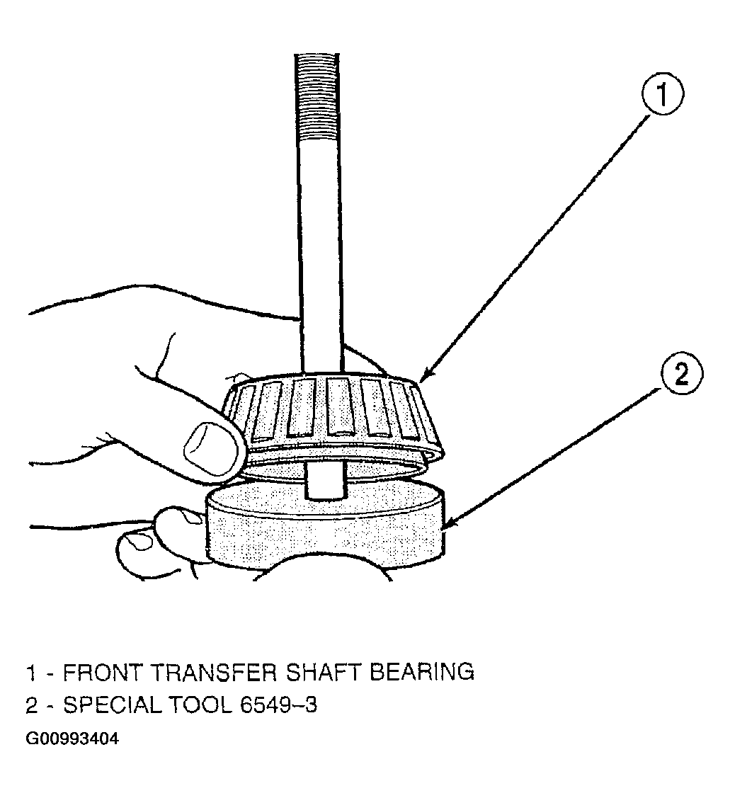 - Install rear transfer shaft cone. Press cone on transfer shaft using Tool 6560.