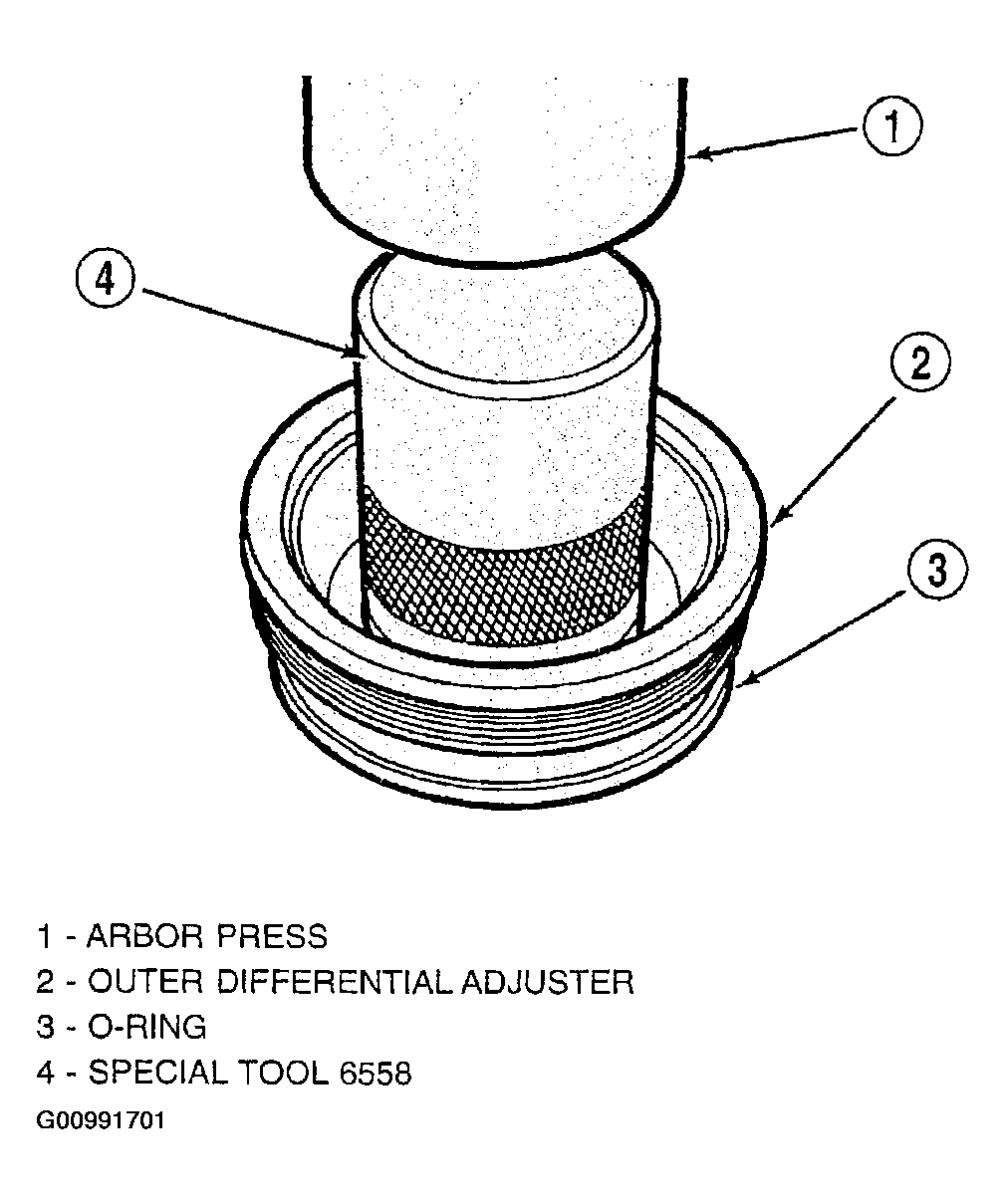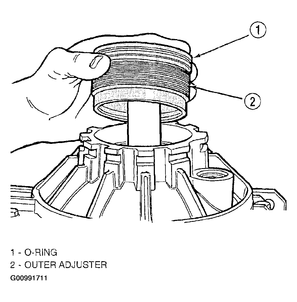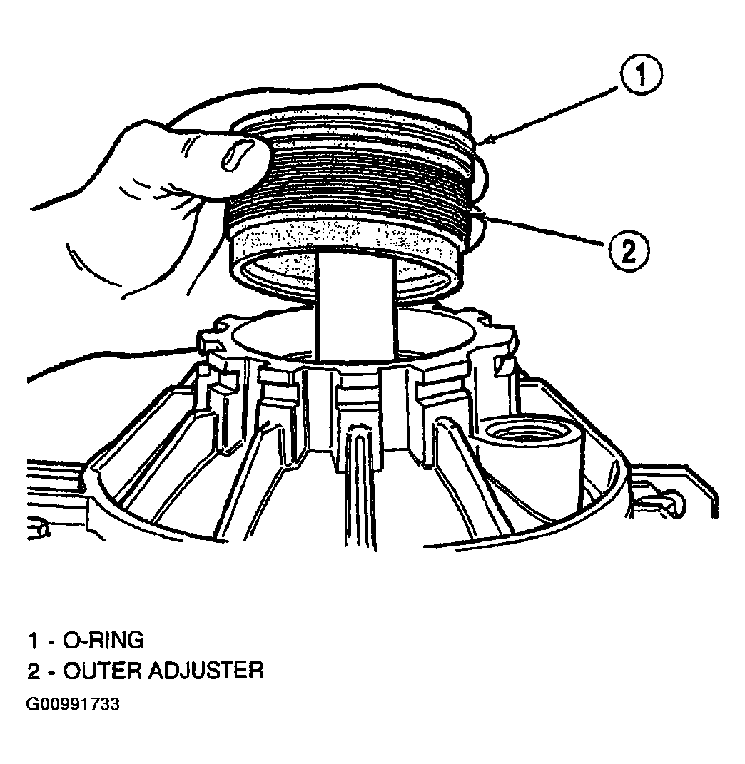 CAUTION: Lube threads and O-ring on adjuster before installing. Failure to due so will result in thread damage to the adjuster and differential cover.