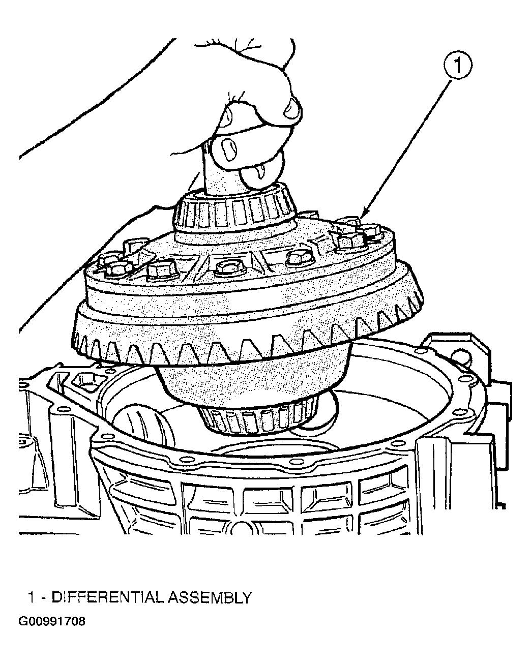 - Install differential assembly (with ring gear attached) into transaxle case. See Fig 45.