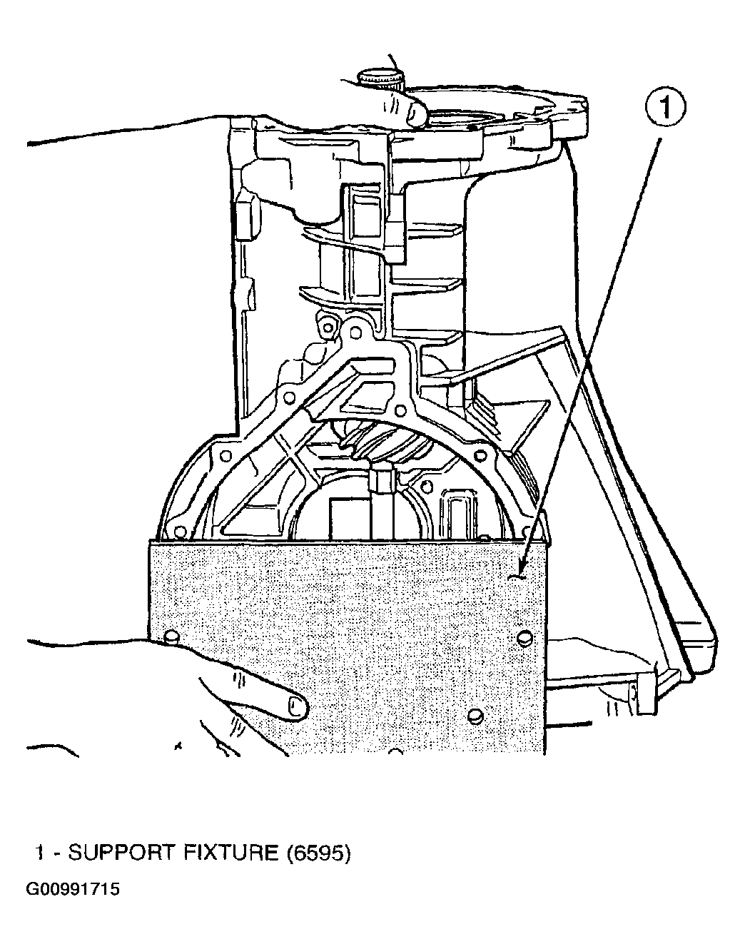 - Install transfer shaft support fixture (special tool 6595). See Fig 31.