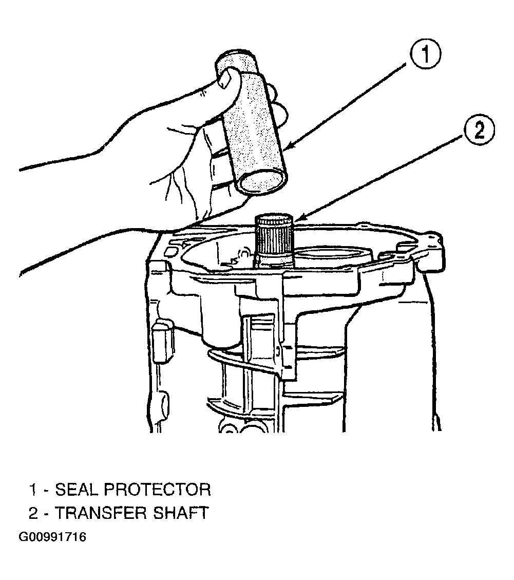 - Install transfer shaft seal protector (special tool 6592). See Fig 32. Apply thin film of gear oil to protector.