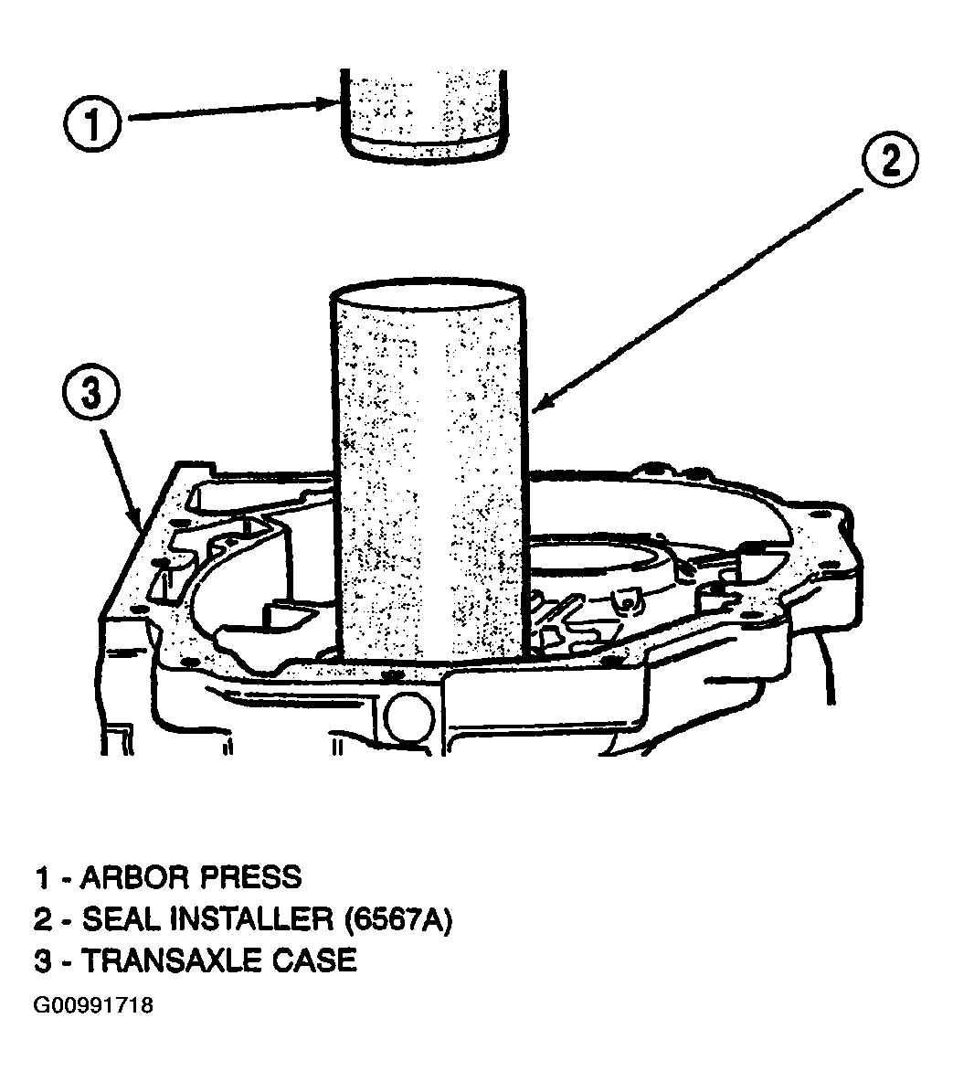 - Install seal with special tool 6567A. See Fig 34. Use a press to install seal. The installation tool will set the seal depth. Do not use a hammer to install seal. The seal may be damaged if installed with a hammer.