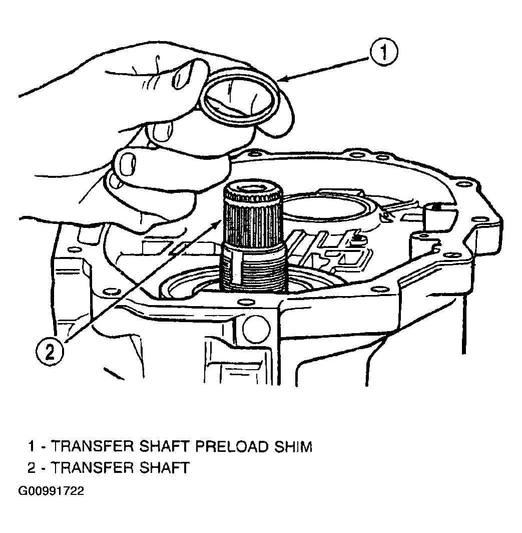CAUTION: Failure to set the transfer shaft turning torque correctly may cause transfer shaft bearings or seals to fail. Be sure transfer shaft does not have end play. If end play exists, install a thinner preload shim.