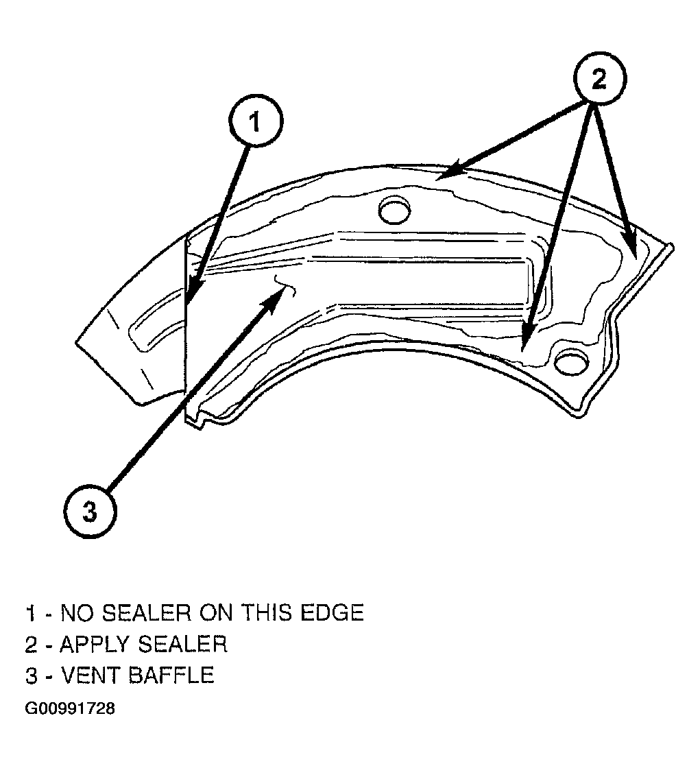 - Install vent baffle. Apply sealer as shown in Fig 44.
