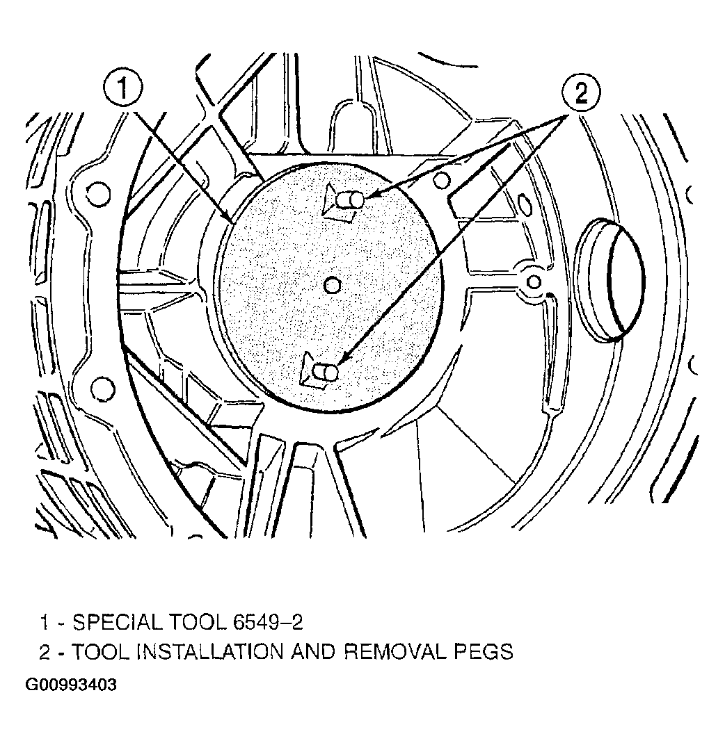 - Install centering block (special tool 6549-2) into the transaxle case. See Fig 2. Screw centering block into inner adjuster hole of case until it bottoms. The pegs on the special tool are only used for installation. Orientation with in the case is not required.