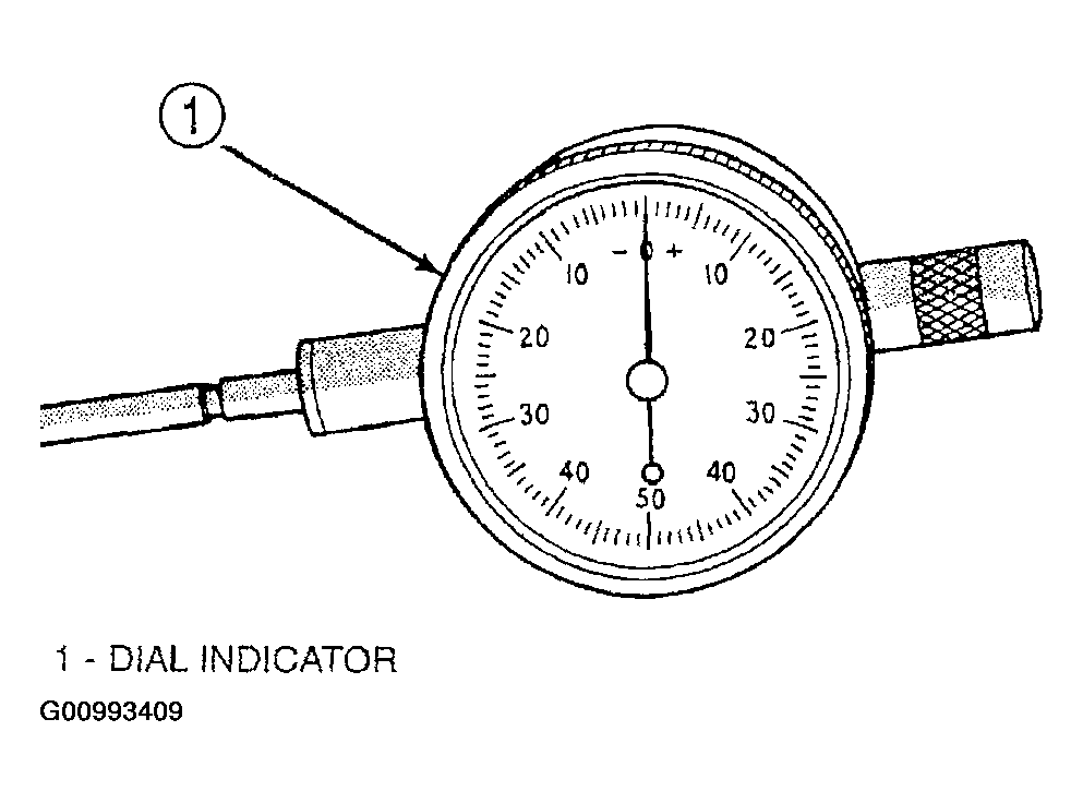 NOTE: The dial indicator used to make this measurement must have a face that shows 0-50-0 (Special Tool C-3339) readings. See Fig 8. All steps from this point forward will reflect this assumption. This will give you proper shim thickness.