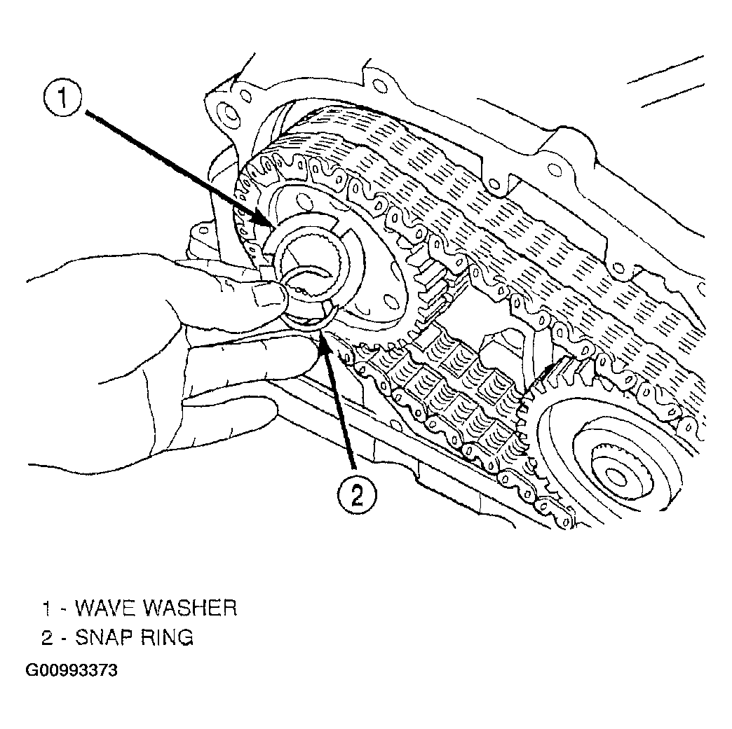 - Remove transfer shaft sprocket snap ring and wave washer. See Fig 5.