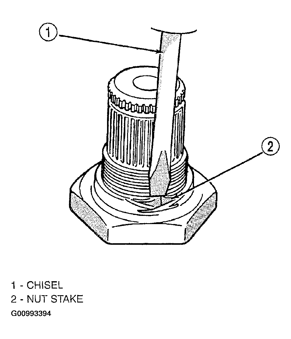 - Using a small chisel, carefully open stakes on nut. See Fig 25)