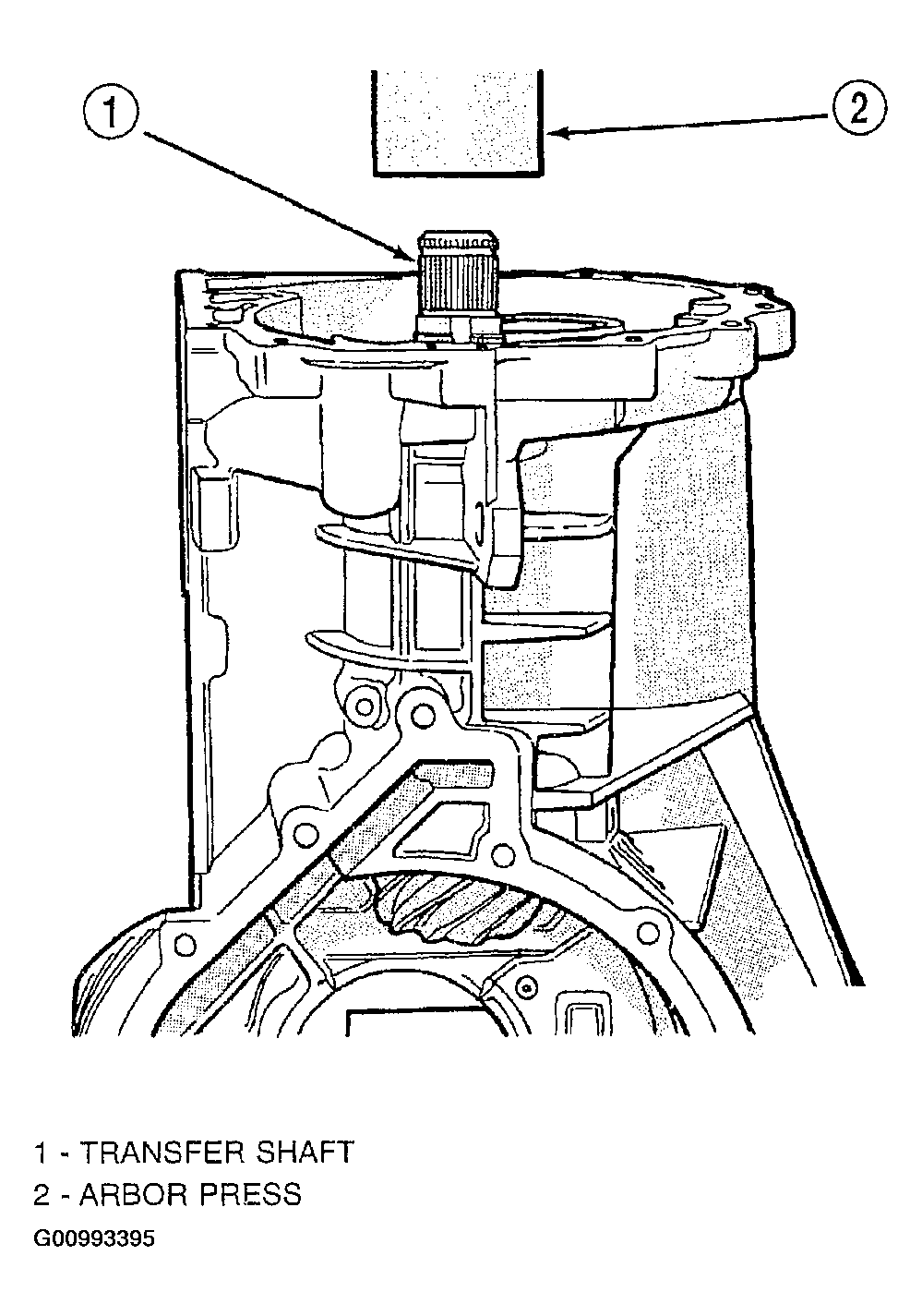 CAUTION: If the transfer shaft is removed from the transaxle case for any reason, both seals must be replaced.