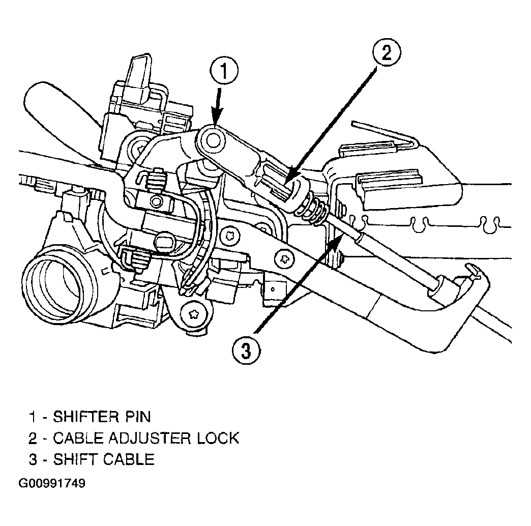 - Attach shift cable to attaching stud (pin) by snapping into place. See Figure.