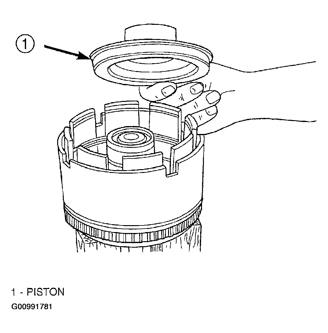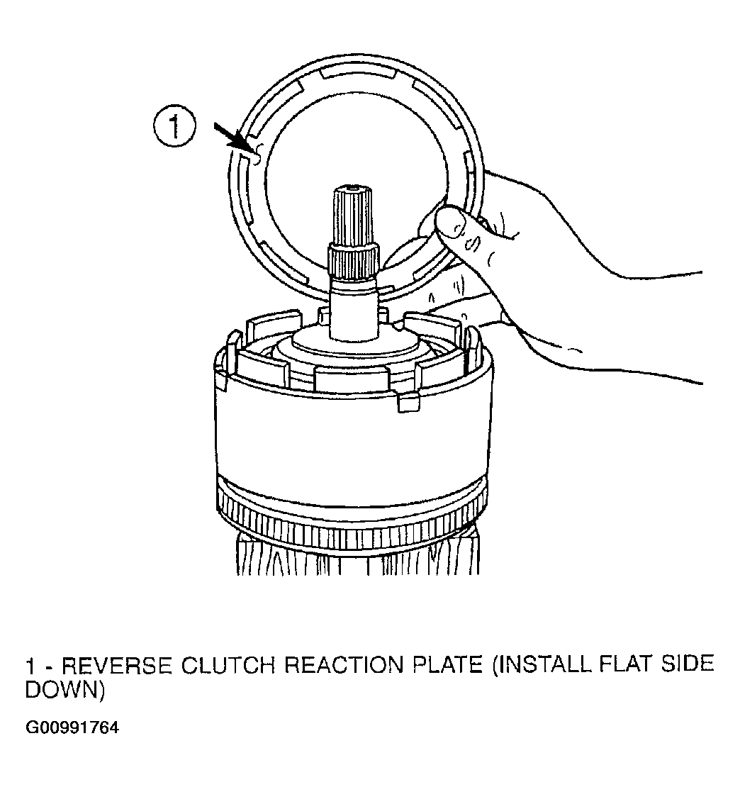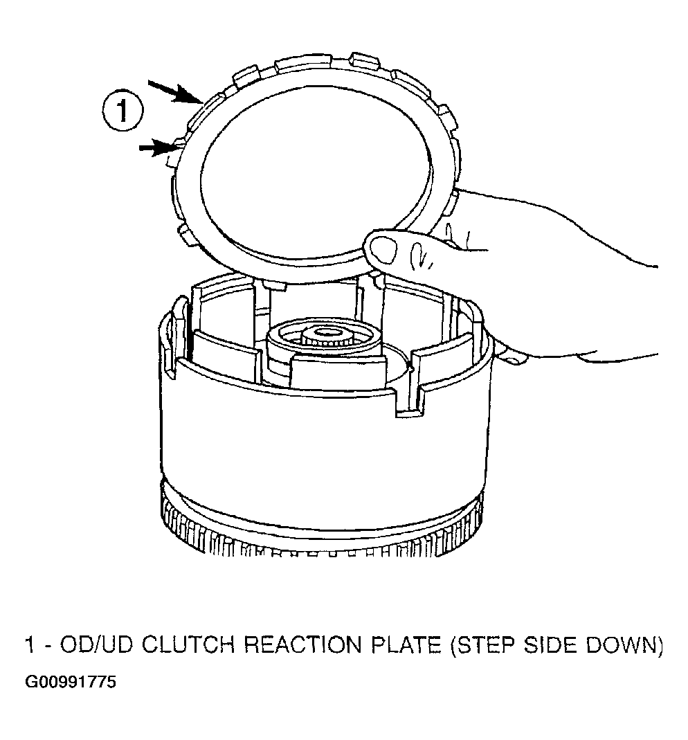 The OD/UD clutch reaction plate has a step on both sides. Install the OD/UD clutches reaction plate tapered step side up.