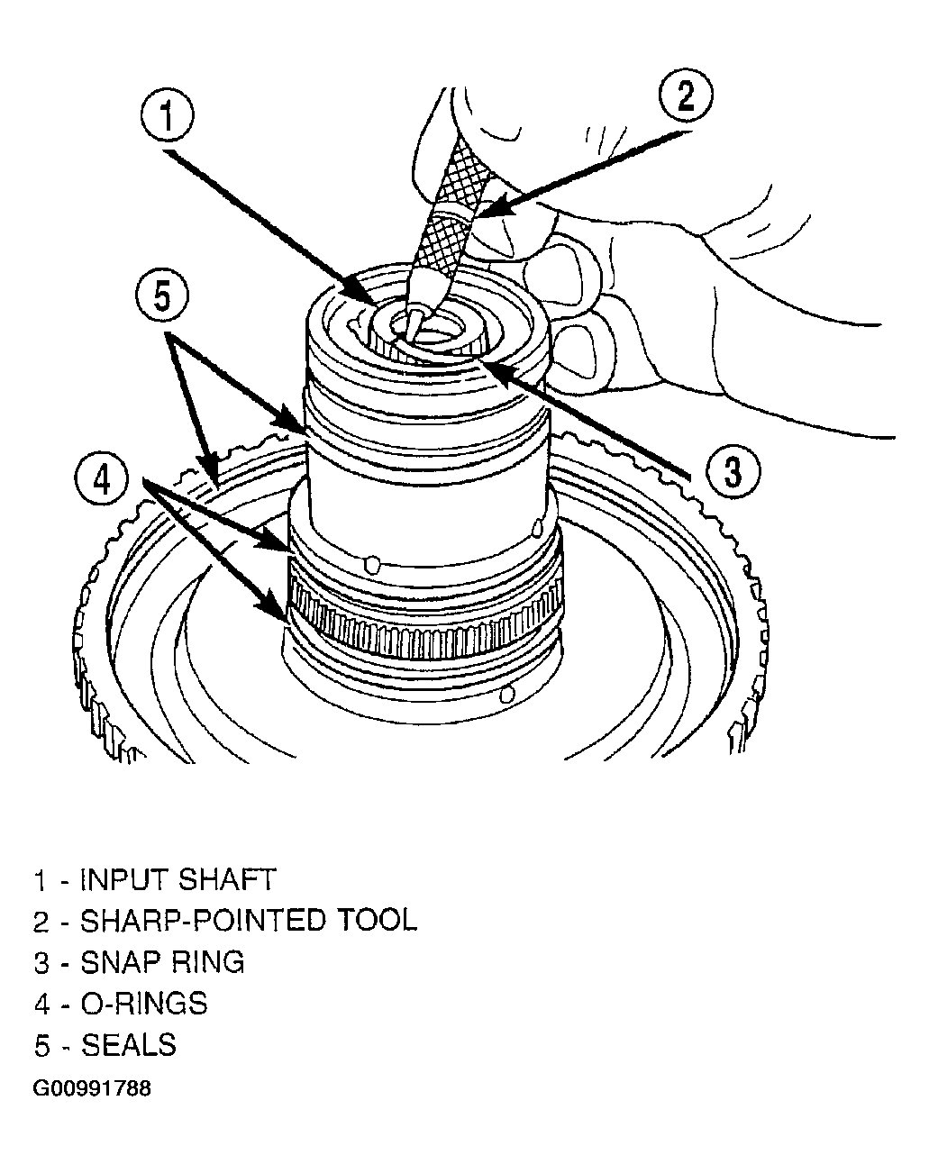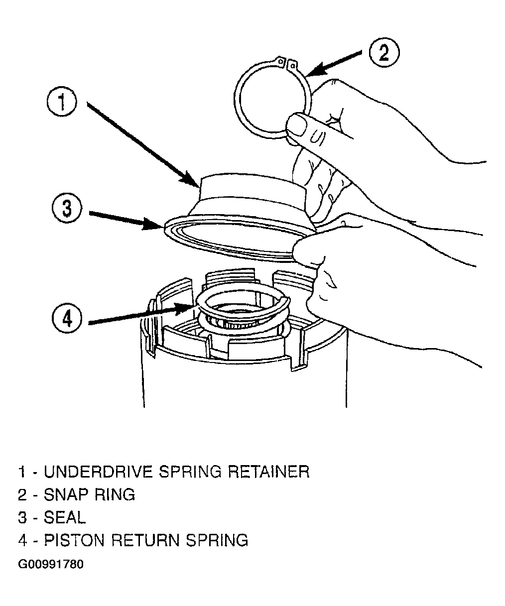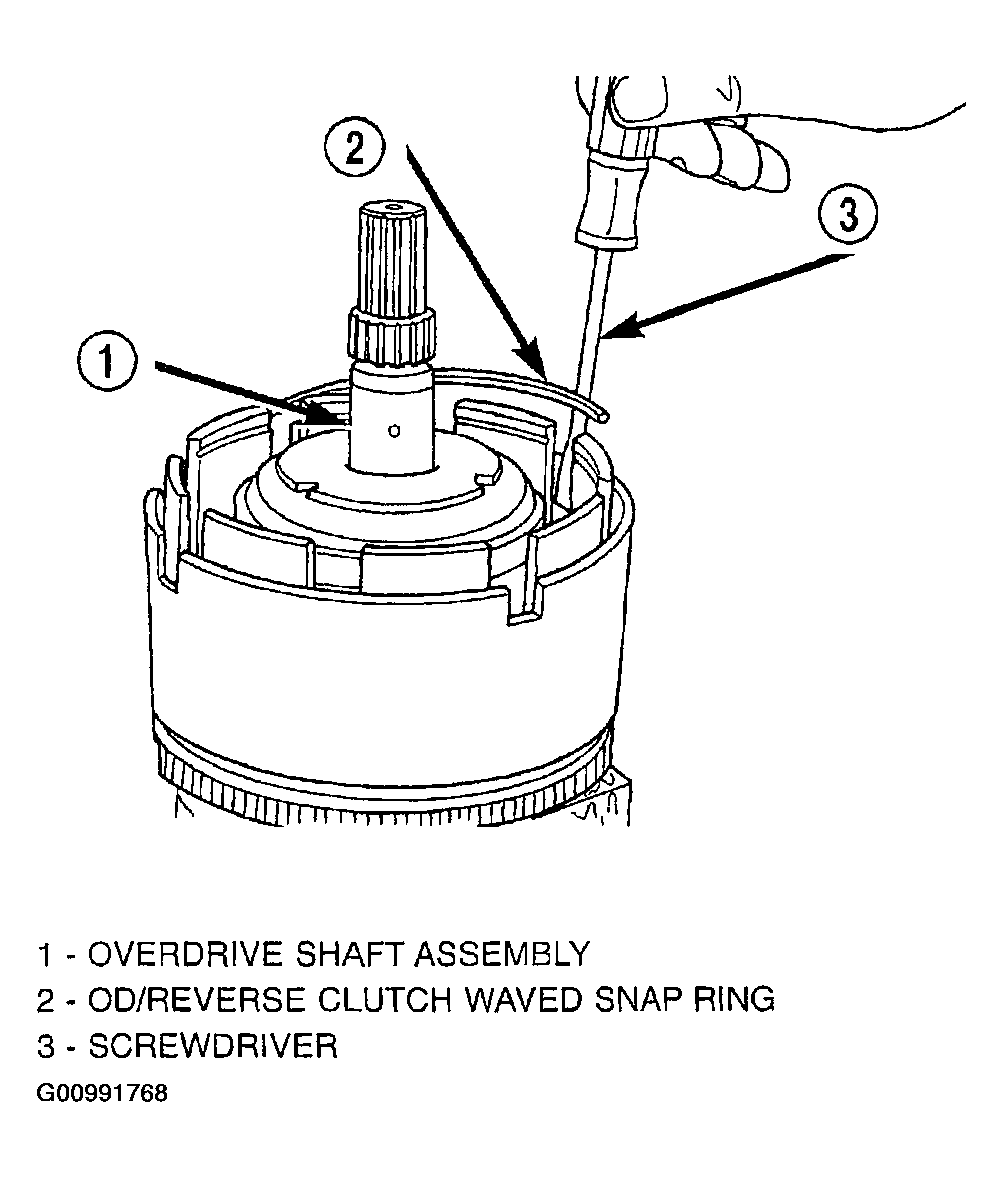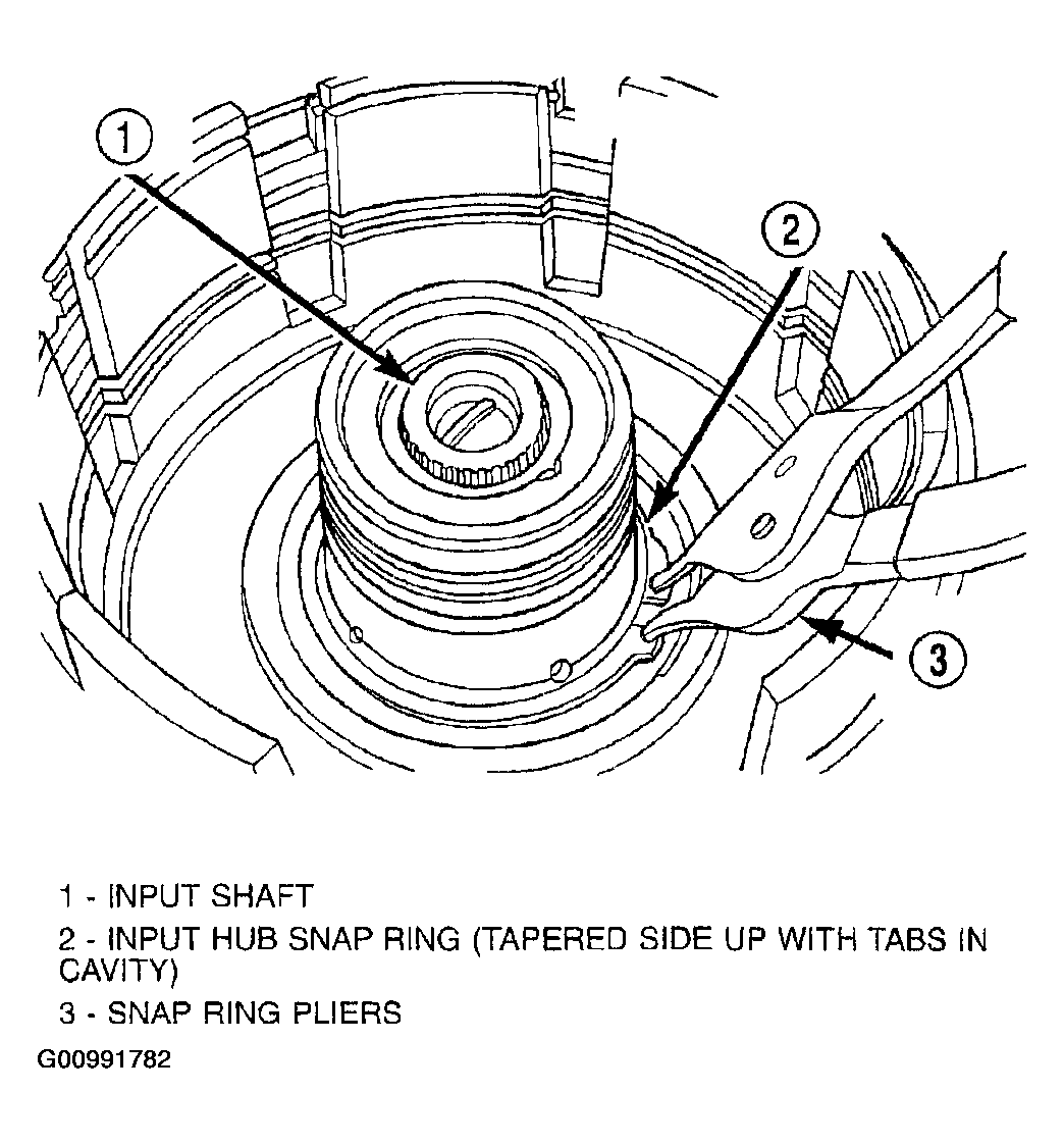 The OD/UD Reaction Plate, Snap Rings, and Input Clutch Retainer is not interchangeable with previous year 41TE components. The snap rings are thicker and the position of the ring lands have changed.