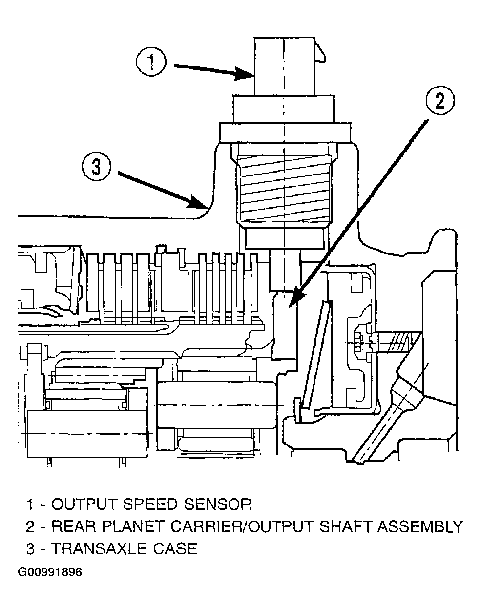 The Output Speed Sensor provides information on how fast the output shaft is rotating. As the rear planetary carrier park pawl lugs pass by the sensor coil, an AC voltage is generated and sent to the PCM. See Fig 1. The PCM interprets this information as output shaft RPM.