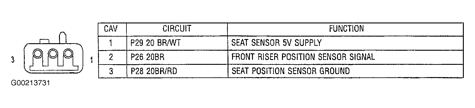 - Turn ignition off. Disconnect driver power seat horizontal motor sensor connector. Measure resistance between ground and driver power seat horizontal motor sensor connector terminal No. 3, ground circuit (Brown/Red wire). See Figure . If resistance is 5 ohms or more, leave driver power seat horizontal motor sensor connector disconnected and go to next step. If resistance is less than 5 ohms, go to step 3 .