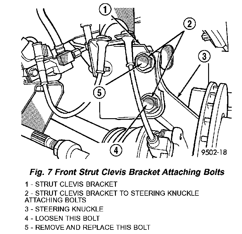3. Remove the original upper bolt attaching the strut clevis bracket to the knuckle.