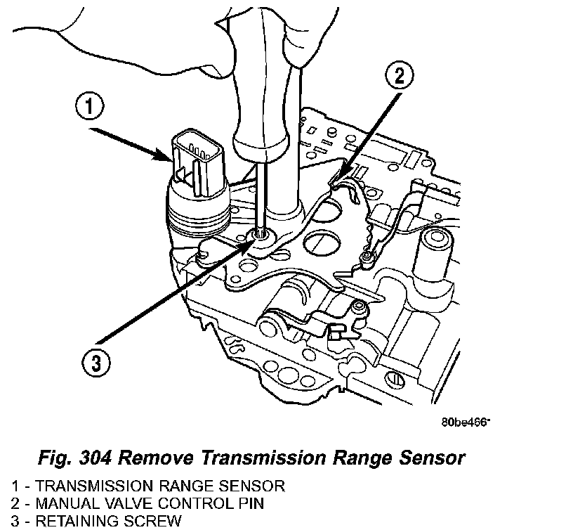 2. Remove transmission range sensor retaining screw and remove sensor from valve body (Fig. 304).
