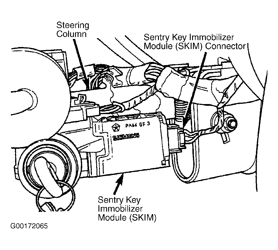 | Sentry Key Immobilizer Module (SKIM) | On Right Side Of Steering Column. See Fig 5 . |