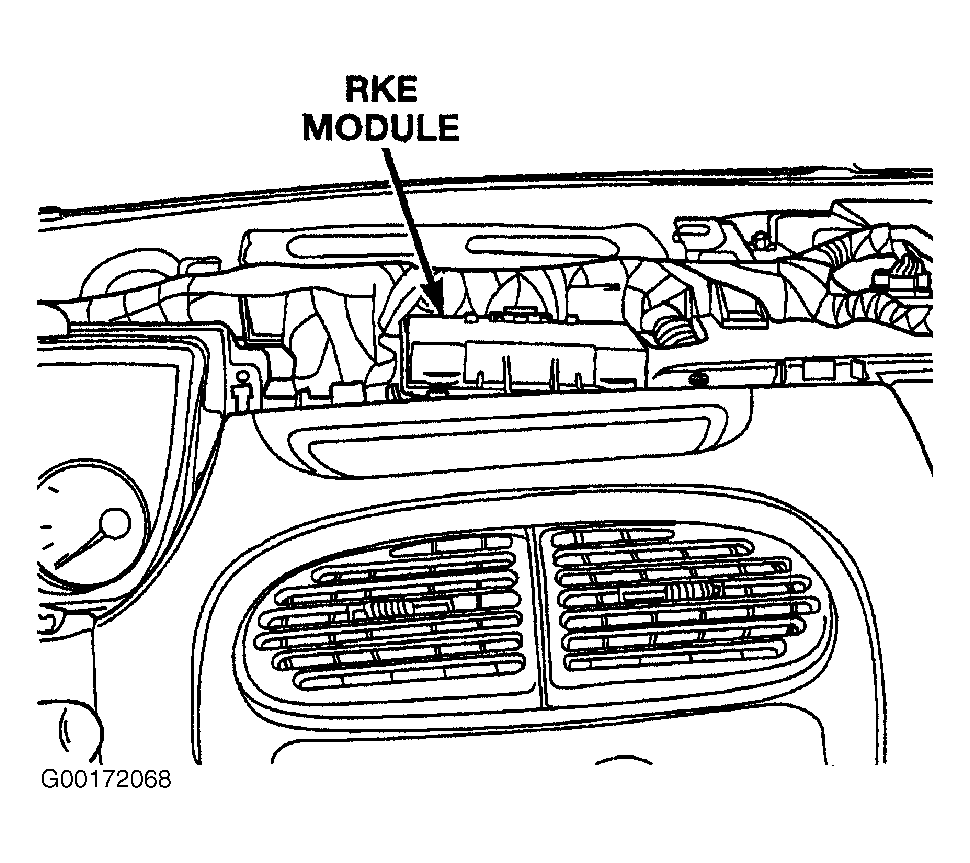 | Remote Keyless Entry (RKE) Module | Under Center Of Dash, Above HVAC Controls. See Fig 4 . |