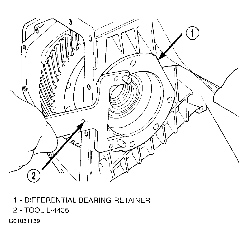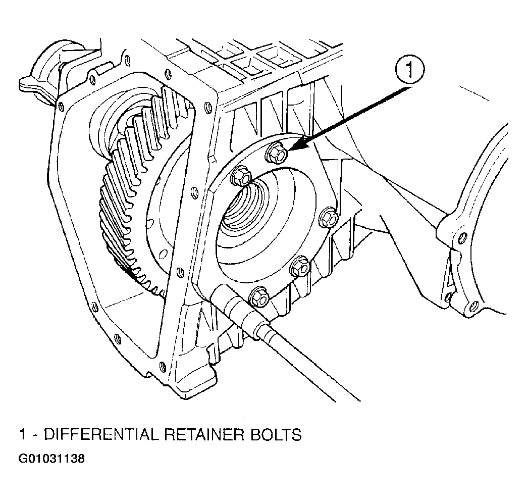 - Remove the differential bearing retainer and bolts (Fig 3 and Fig 4 ).