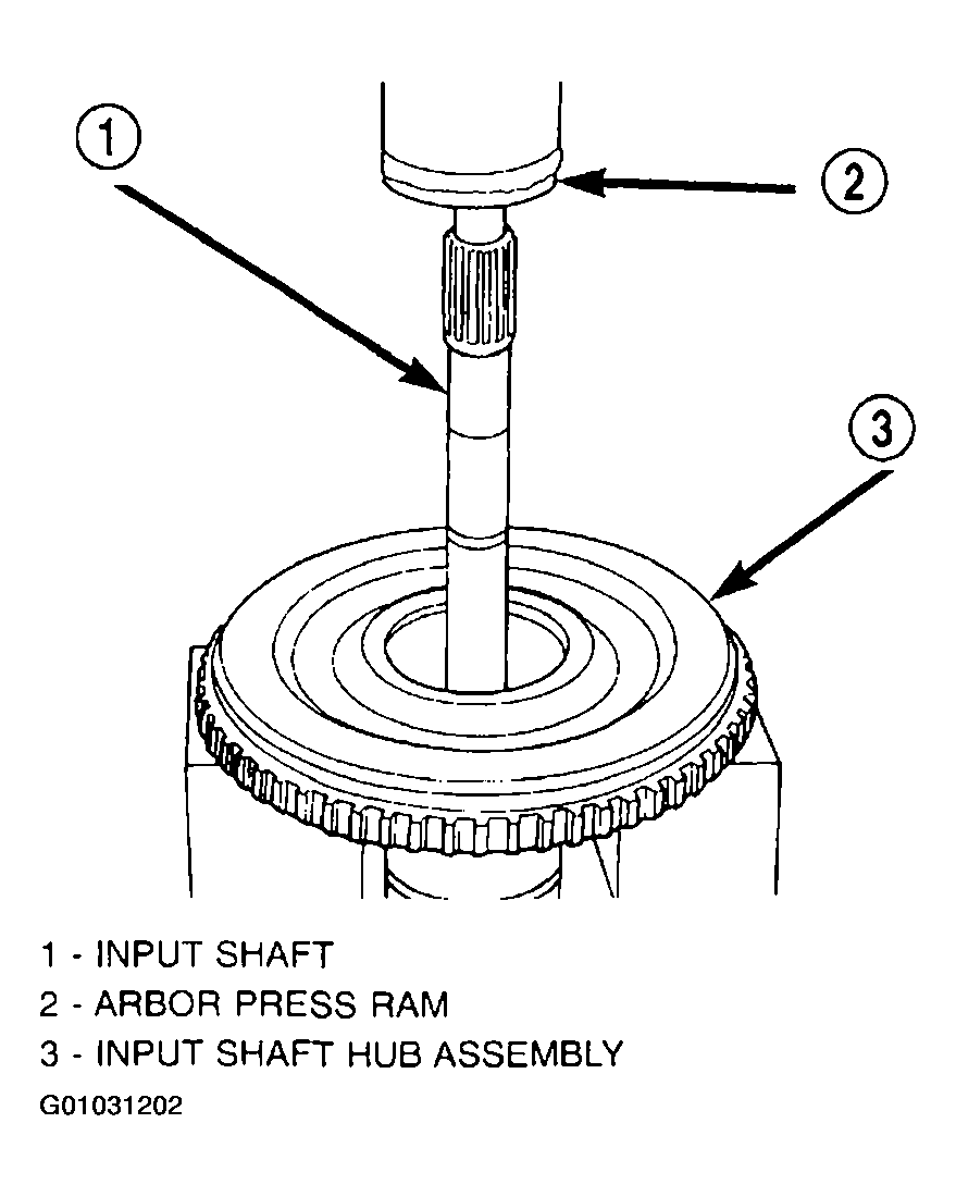 - Using an arbor press, install input shaft to input shaft hub. (Fig 1).
