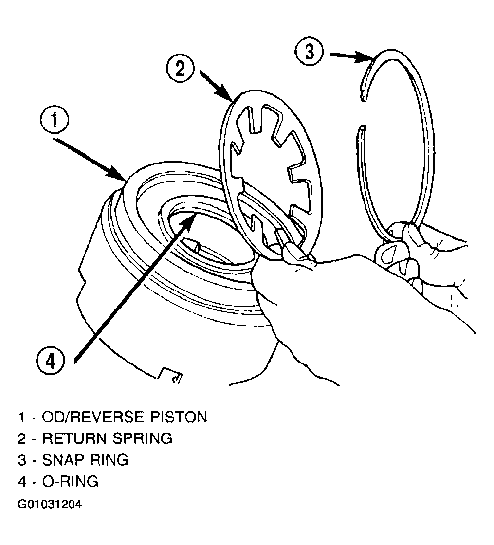 - Install the OD/Reverse piston assembly to the input clutch retainer as shown in (Fig 5).