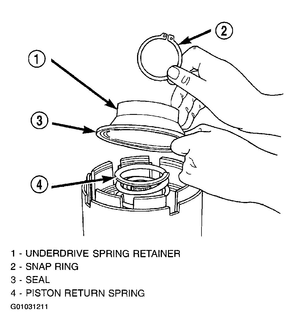 - Using Tool 5059A and an arbor press, install the UD spring retainer and snap ring. (Fig 10 and Fig 11