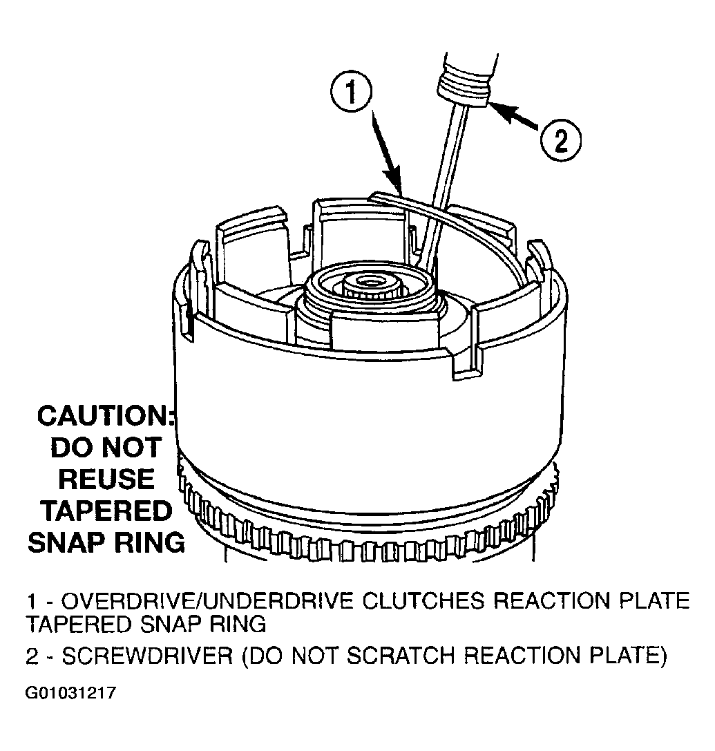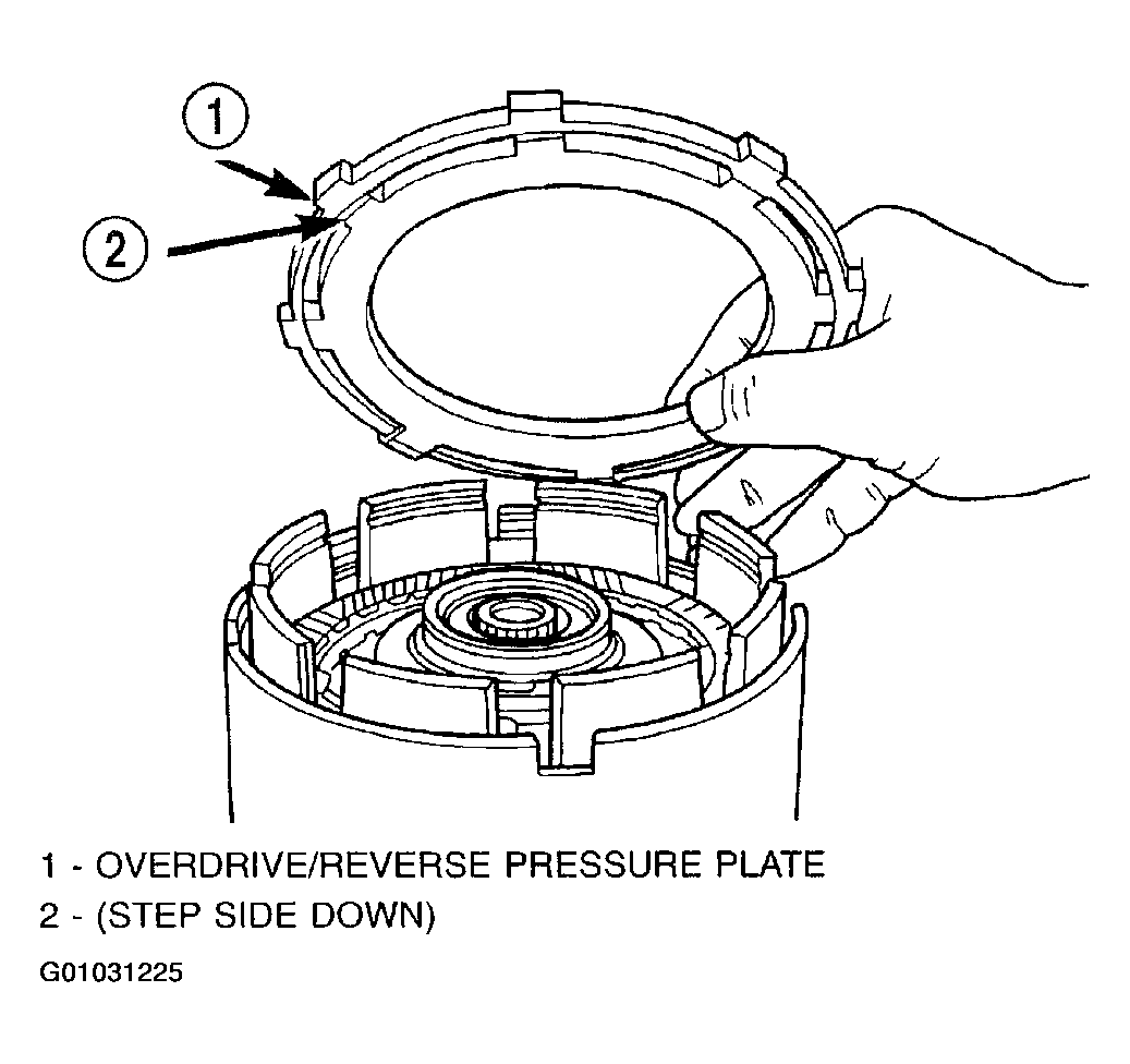). The OD/UD clutches reaction plate has a step on both sides. Install the OD/UD clutches reaction plate tapered step side up.