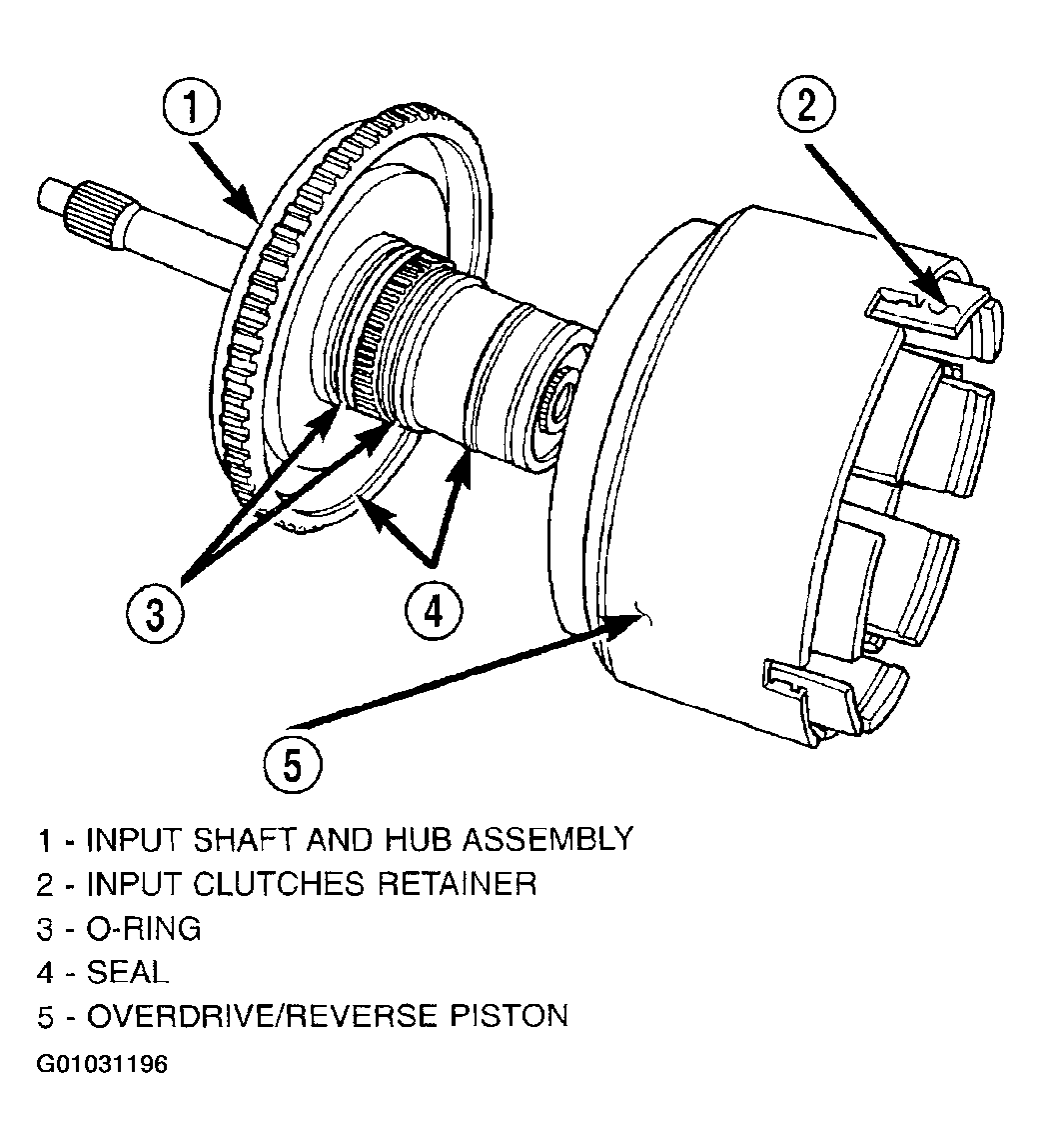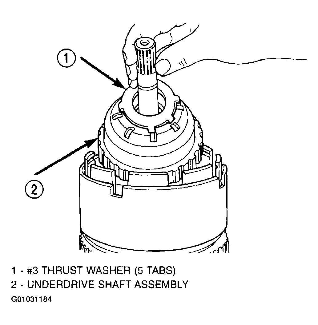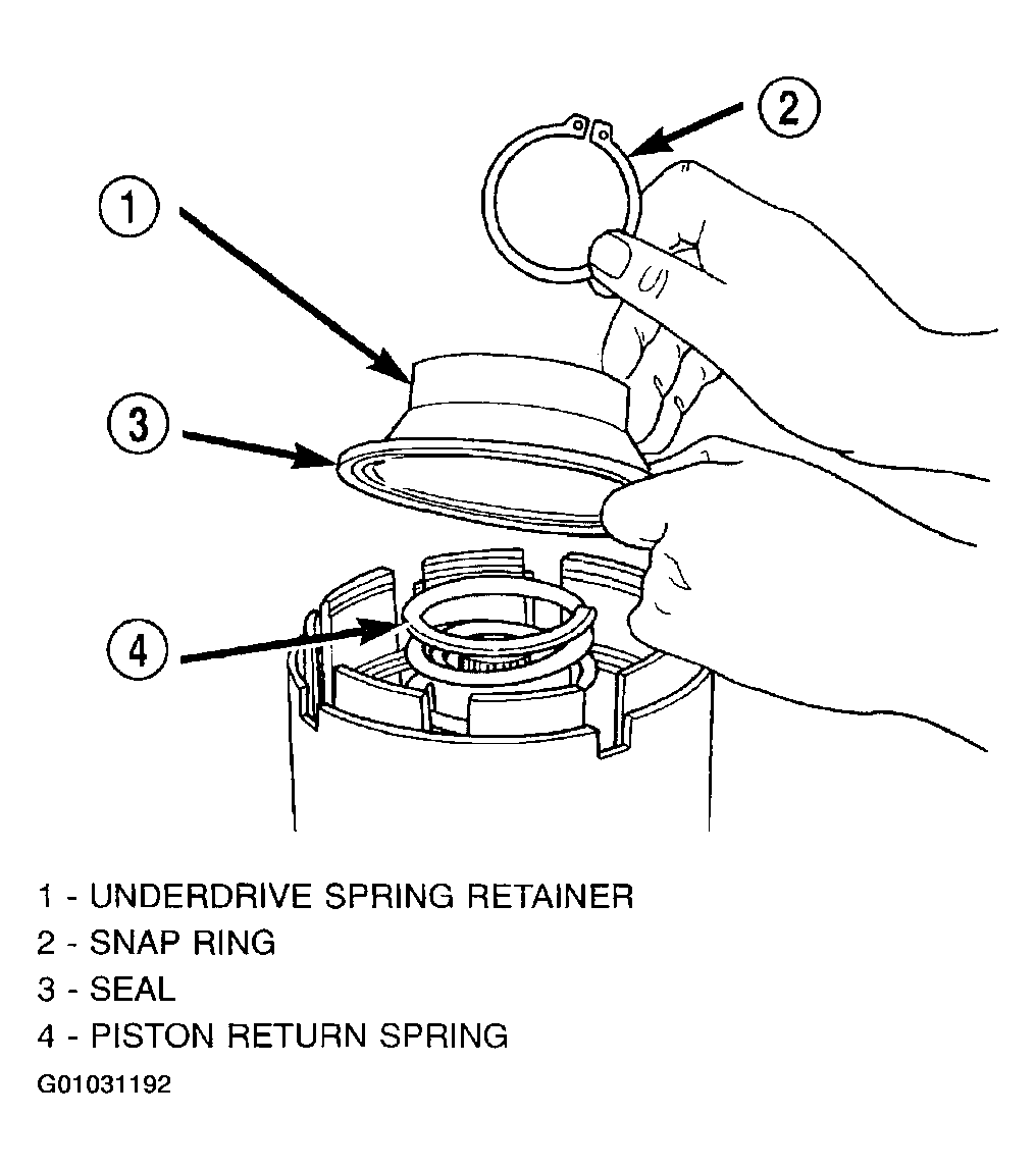 The OD/UD clutch reaction plate has a step on both sides. Install the OD/UD clutches reaction plate tapered step side up.