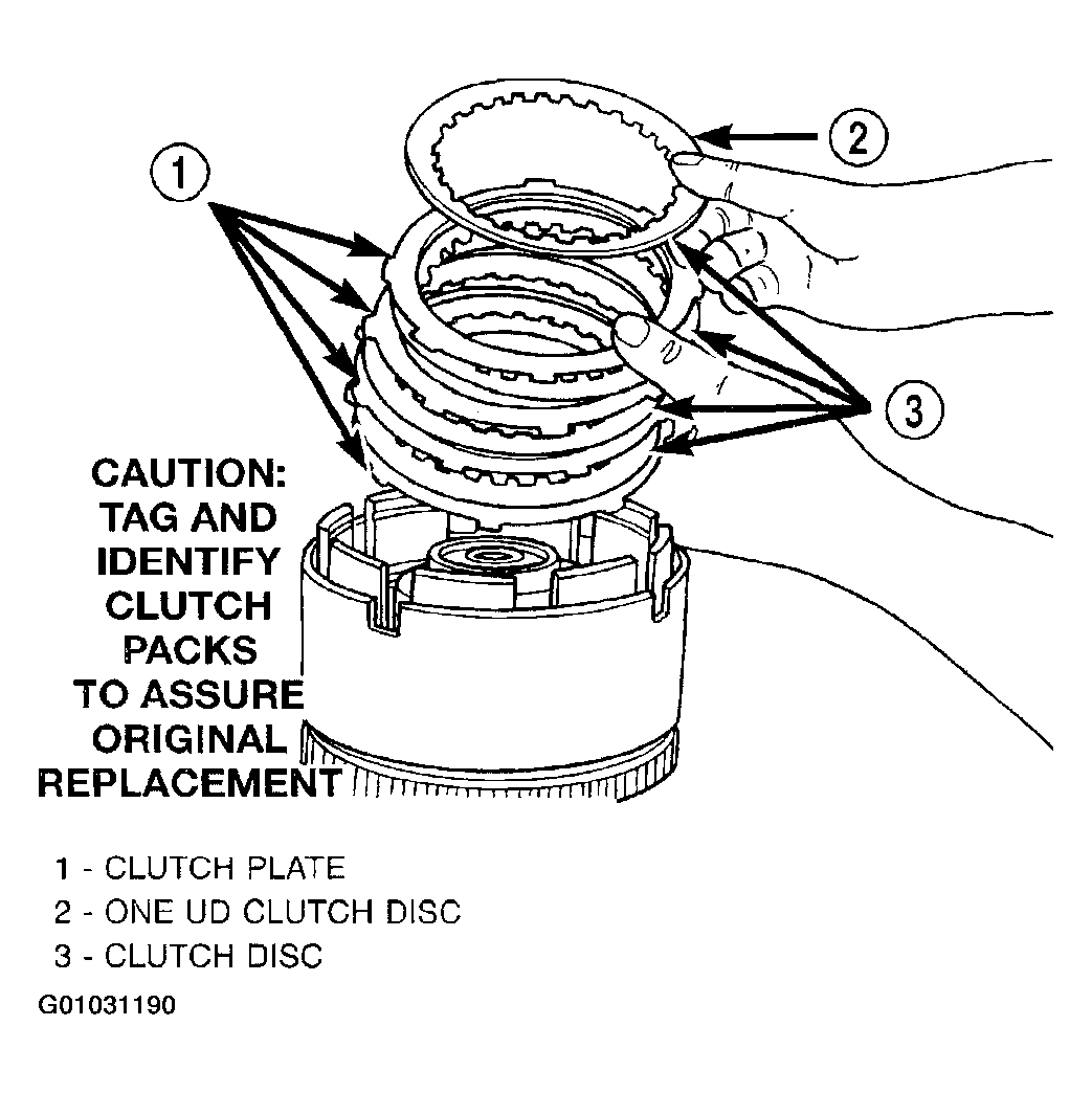 Tag underdrive clutch pack for reassembly identification.