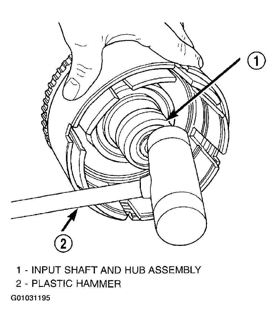 - Tap on input hub with soft faced hammer and separate input hub from OD/Reverse piston and clutch retainer. (Fig 23 and Fig 24