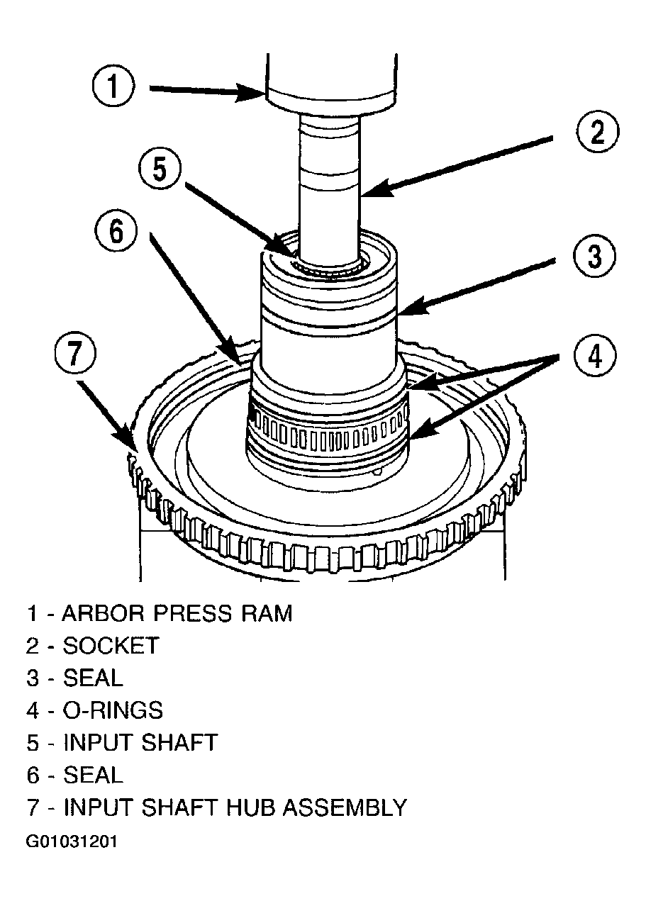 - Using a suitably sized socket and an arbor press, remove input shaft from input shaft hub. (Fig 29).