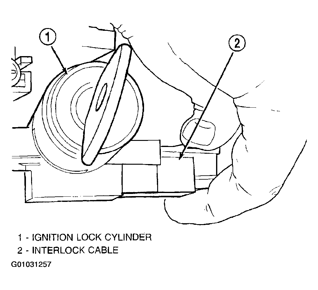 - Install the interlock cable into the interlock housing at the steering column (Figure). Verify the cable snaps into the housing and is fully seated.