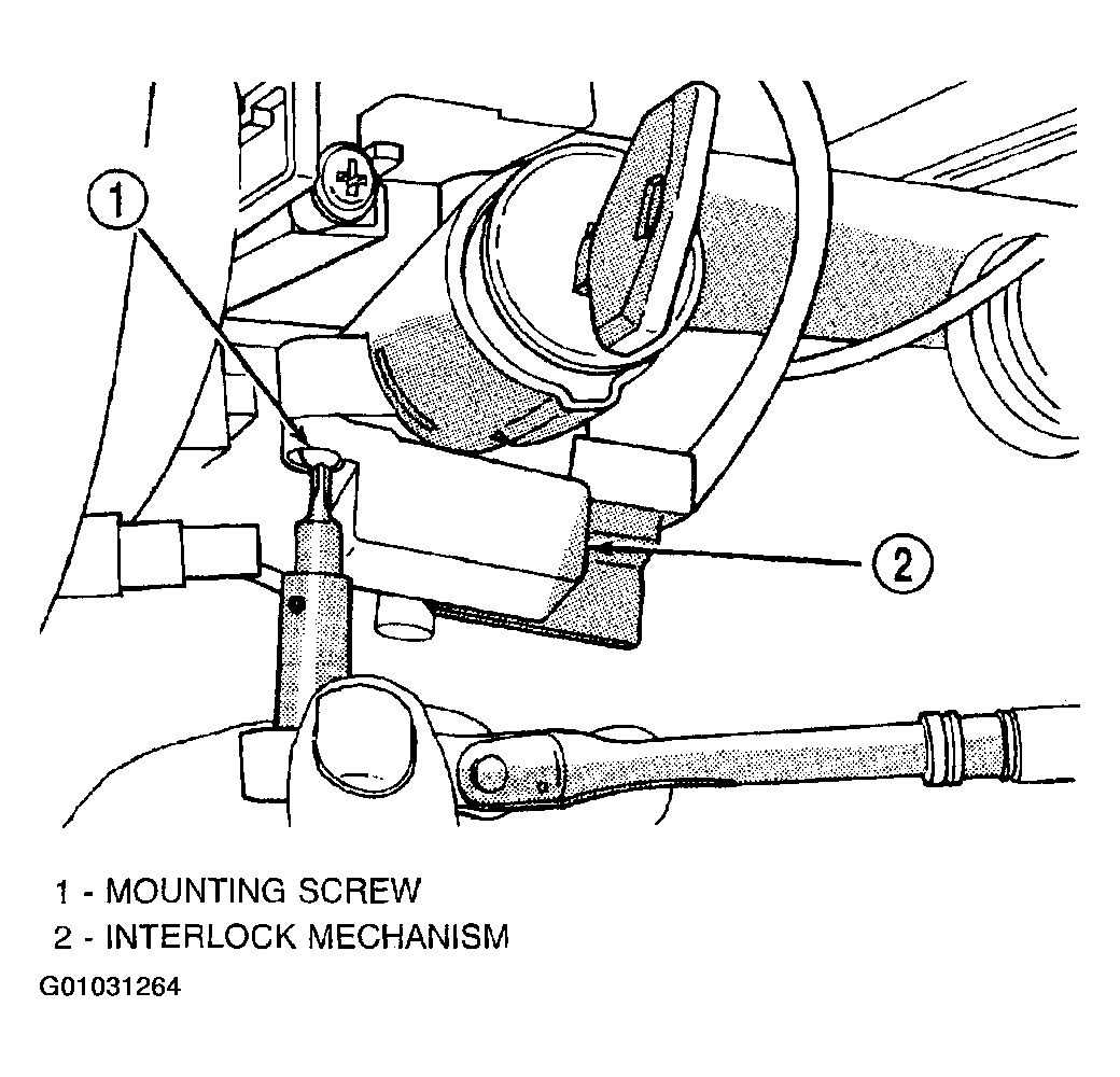 - Remove the two interlock mechanism-to-steering column attaching screws. (Fig 5). Remove the interlock housing.