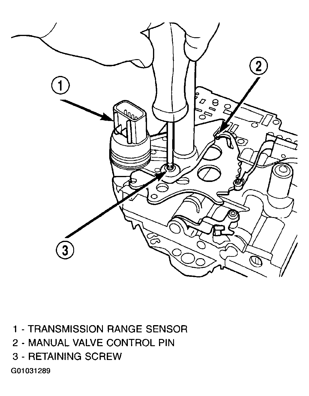 Install transmission range sensor (TRS) to the valve body and torque retaining screw (