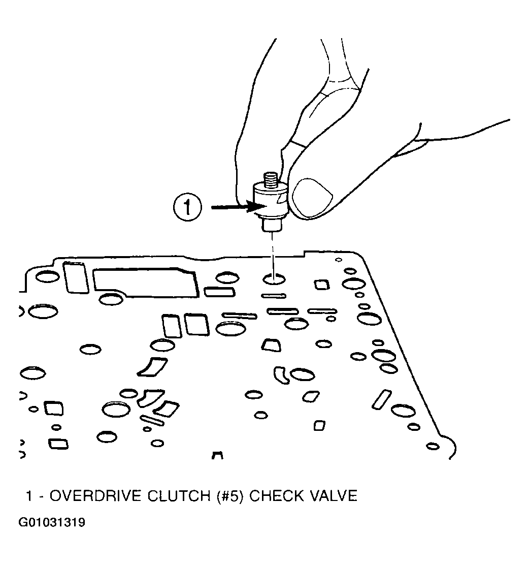 - Install the overdrive clutch (#5) check valve to separator plate. (Fig 7).